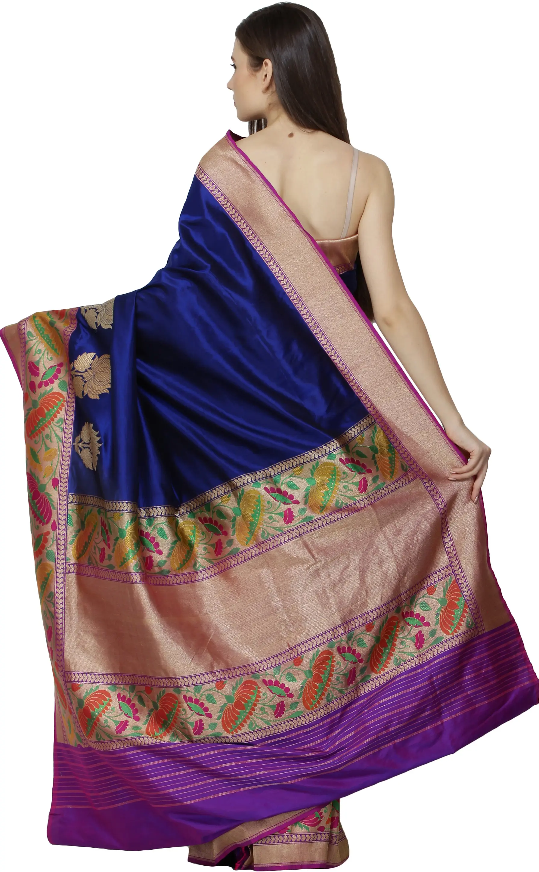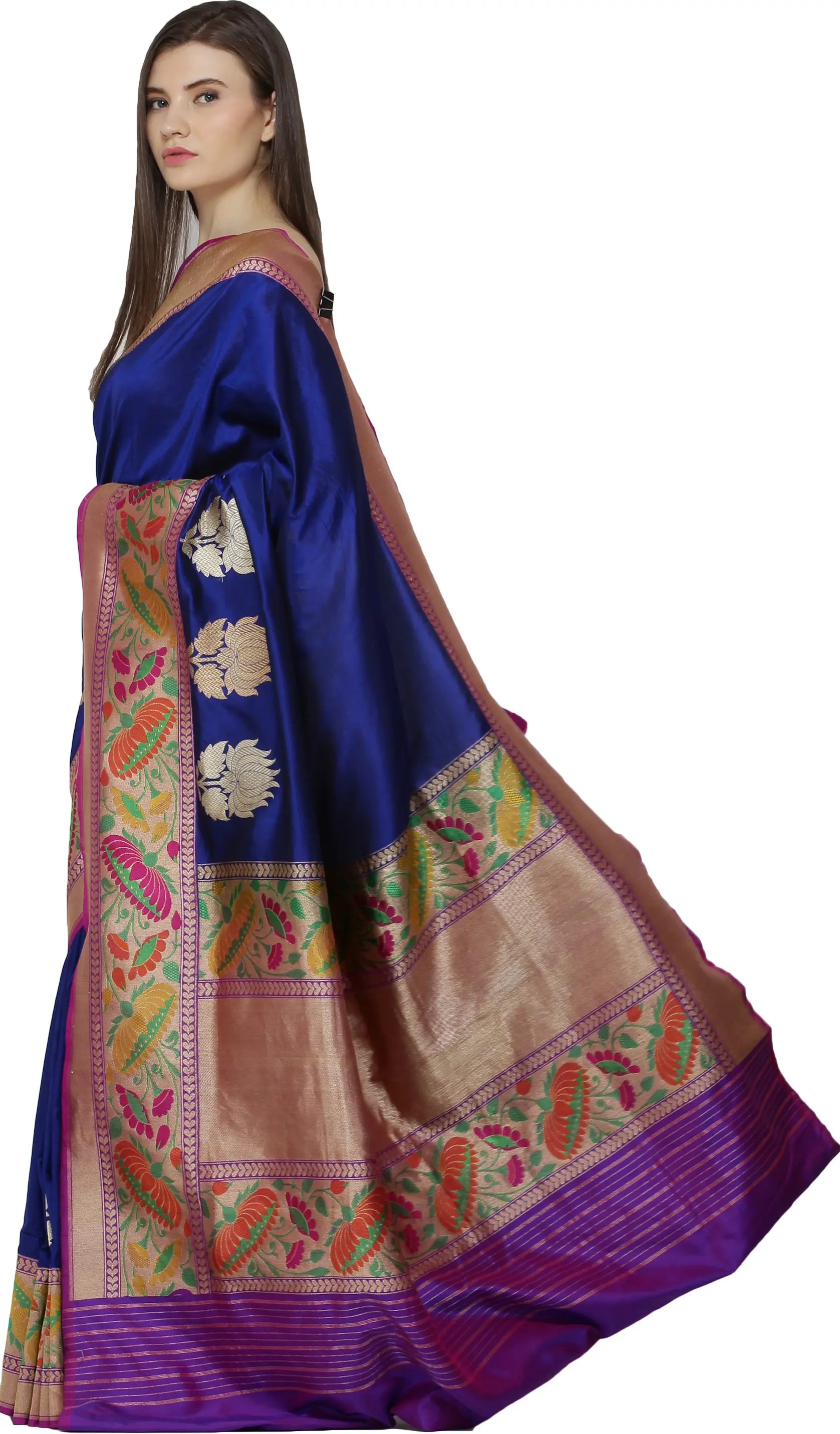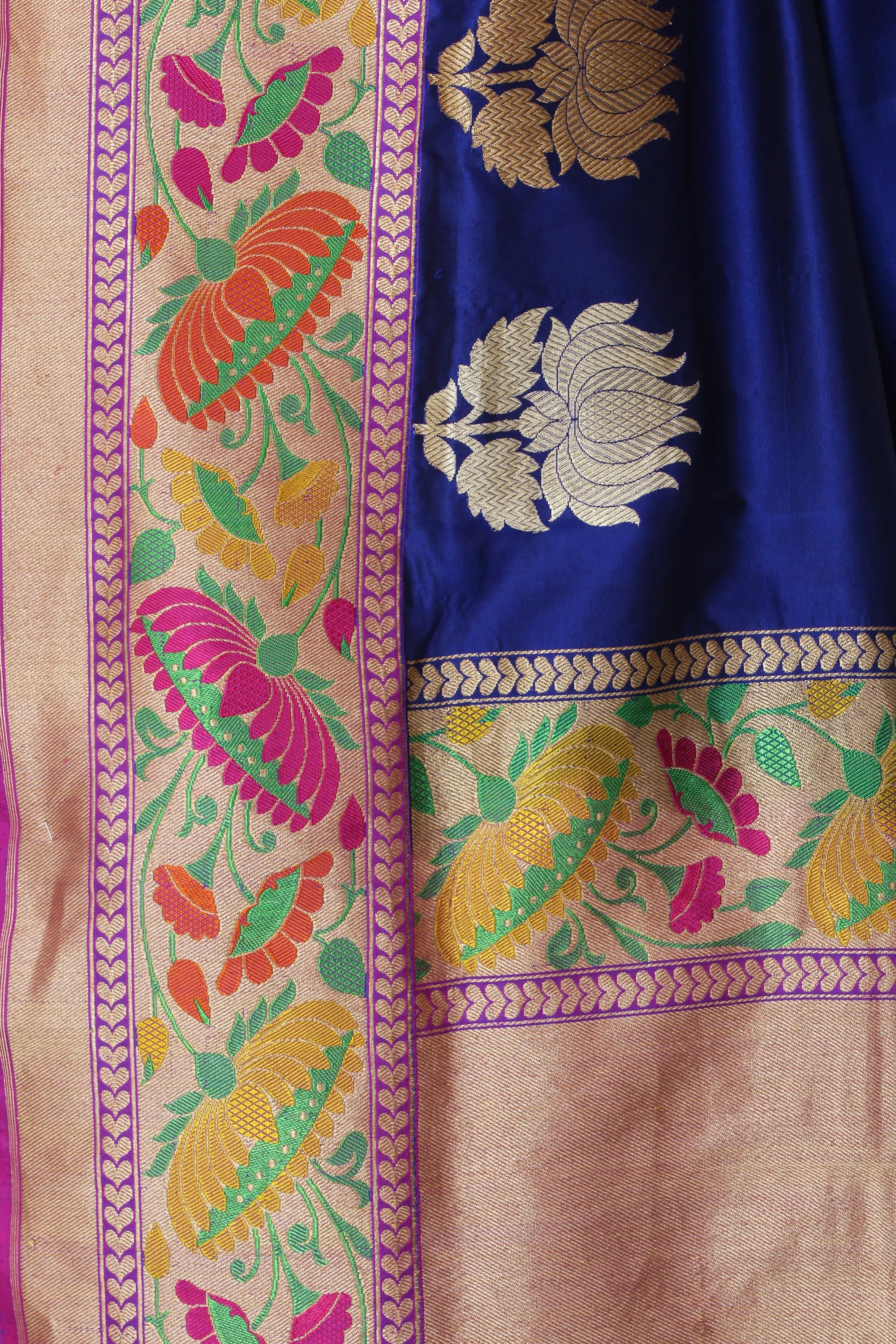 Royal Blue Pure Silk Banarasi Saree with Zari Border Traditional Motifs