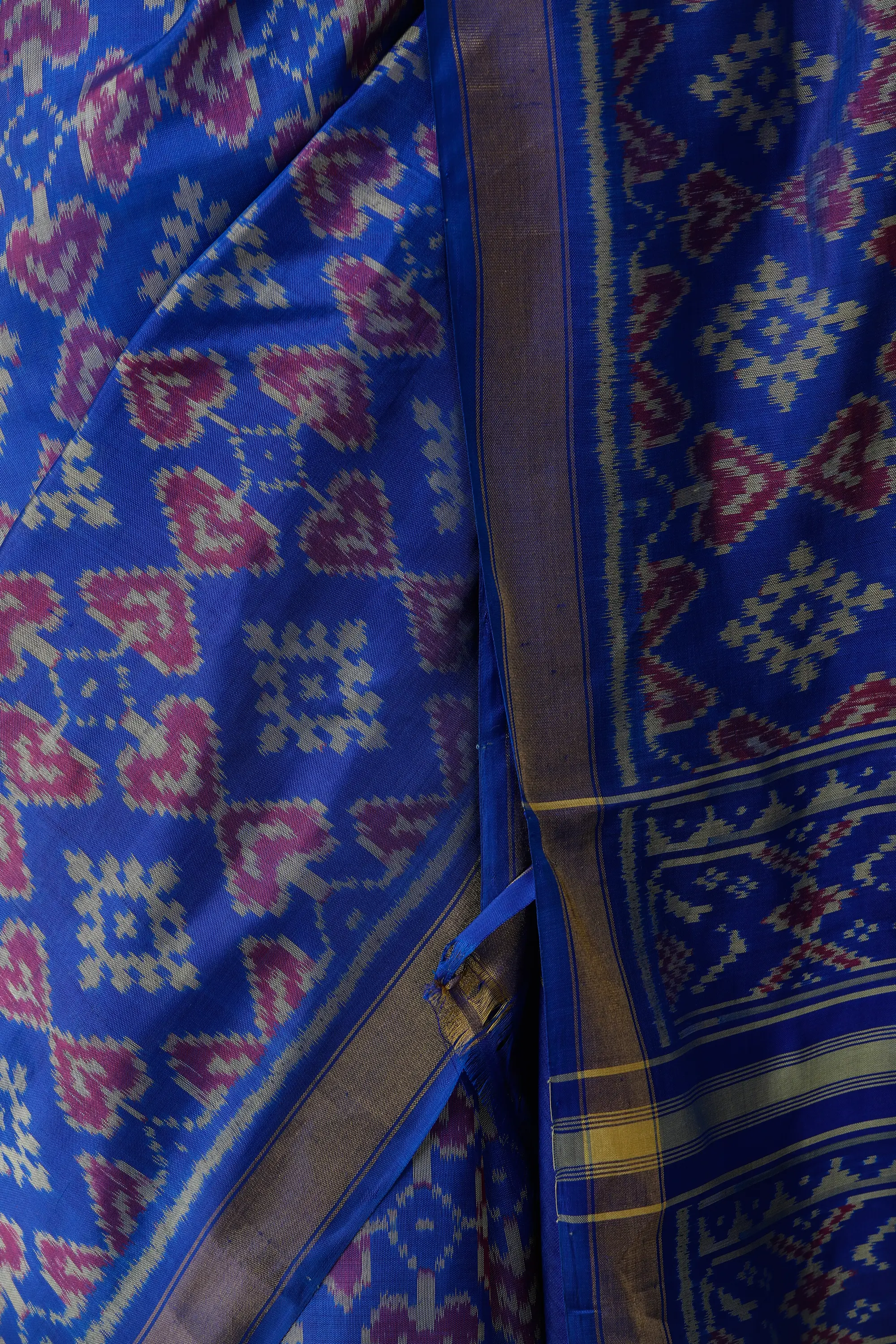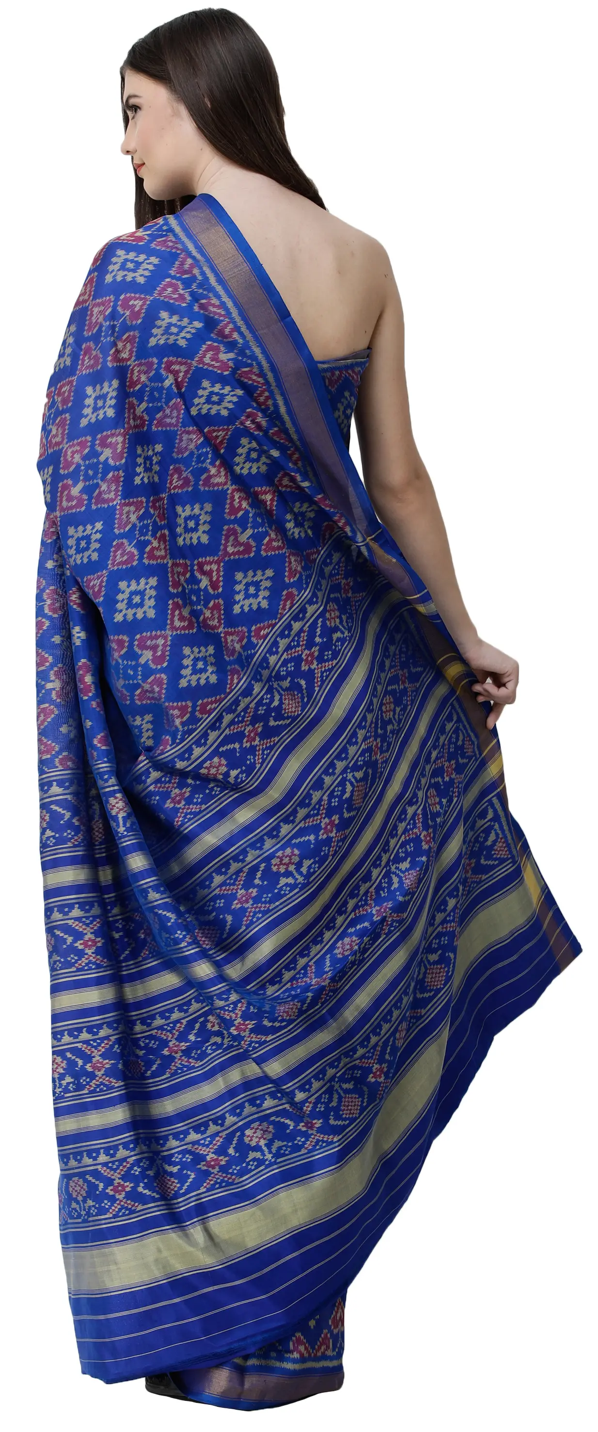 Pure Silk Patan Patola Handloom Saree from Gujarat with Ikat Weave and Contrast Red