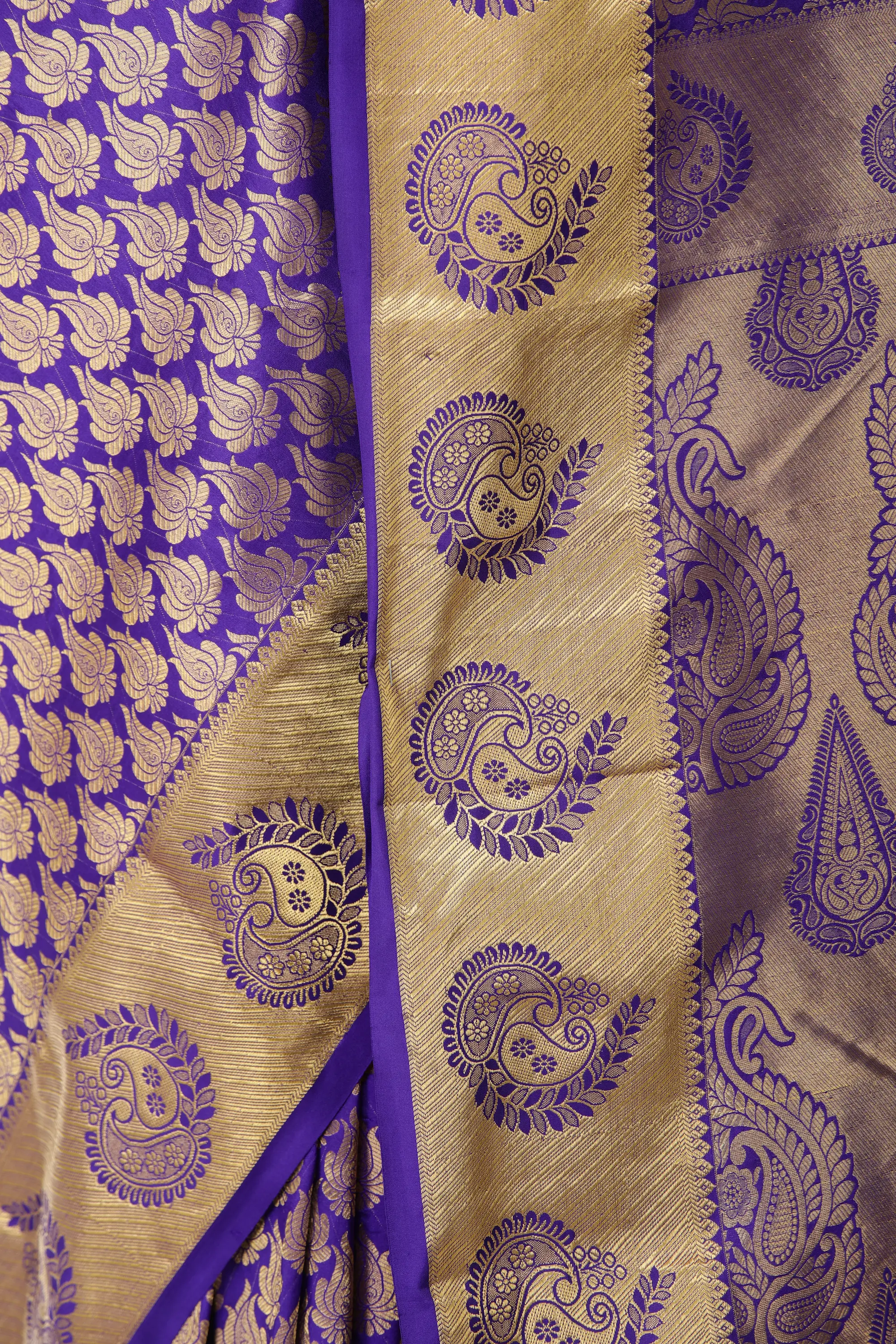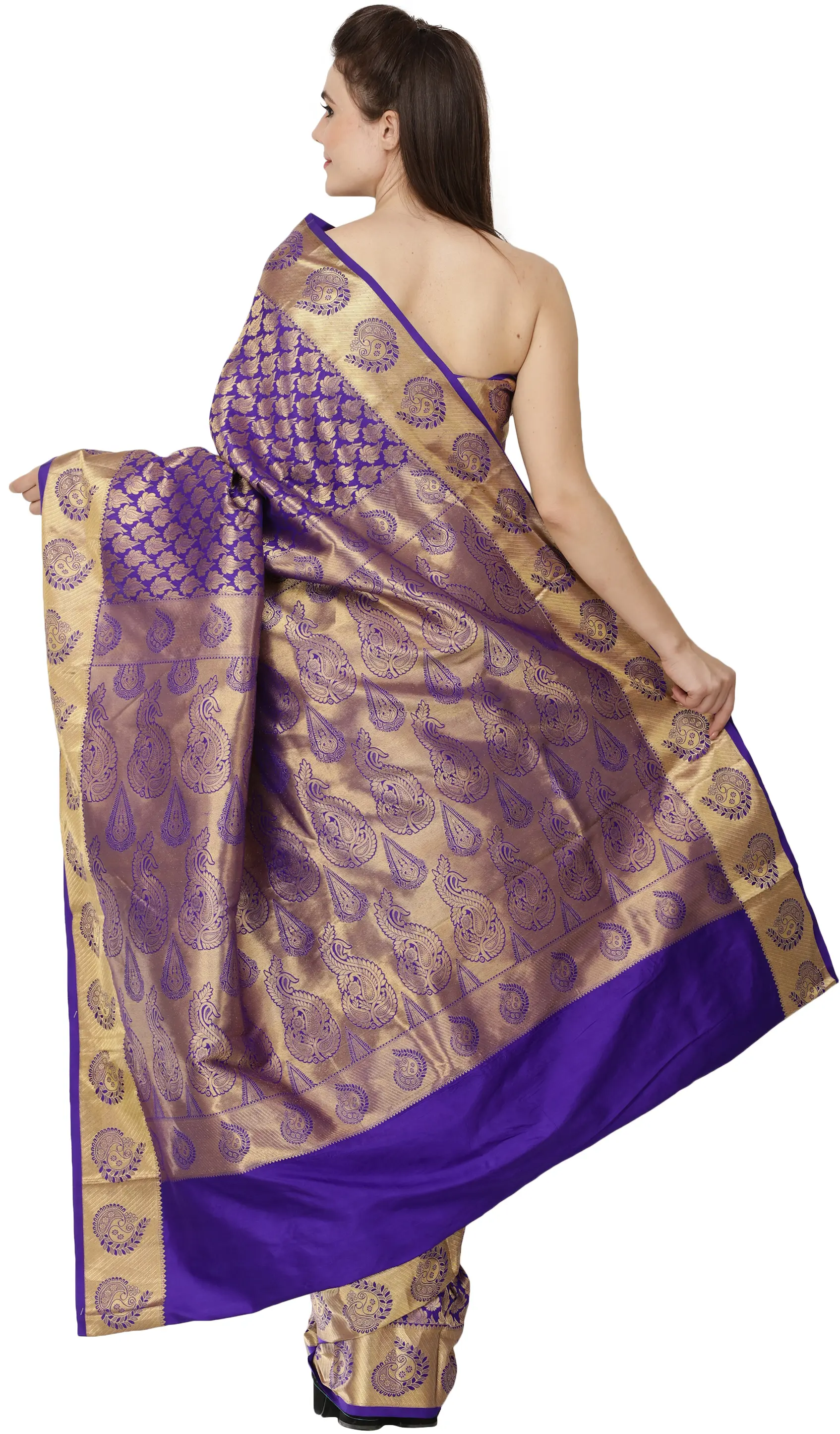 Deep-Blue Brocaded Sari from Bangalore with Zari-Woven Paisleys and Bootis All-Over