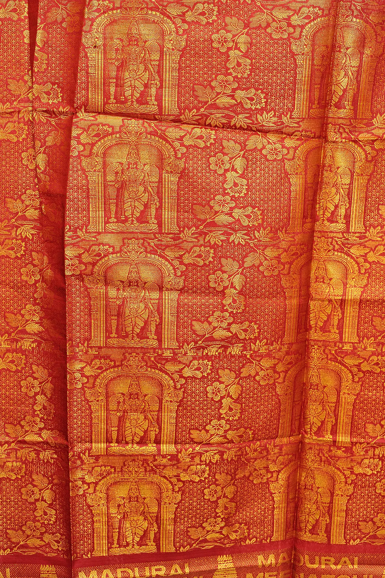 Scarlet-Red Brocaded Shawl from Tamil Nadu with Woven Lord Venkateshvara of Tirupati