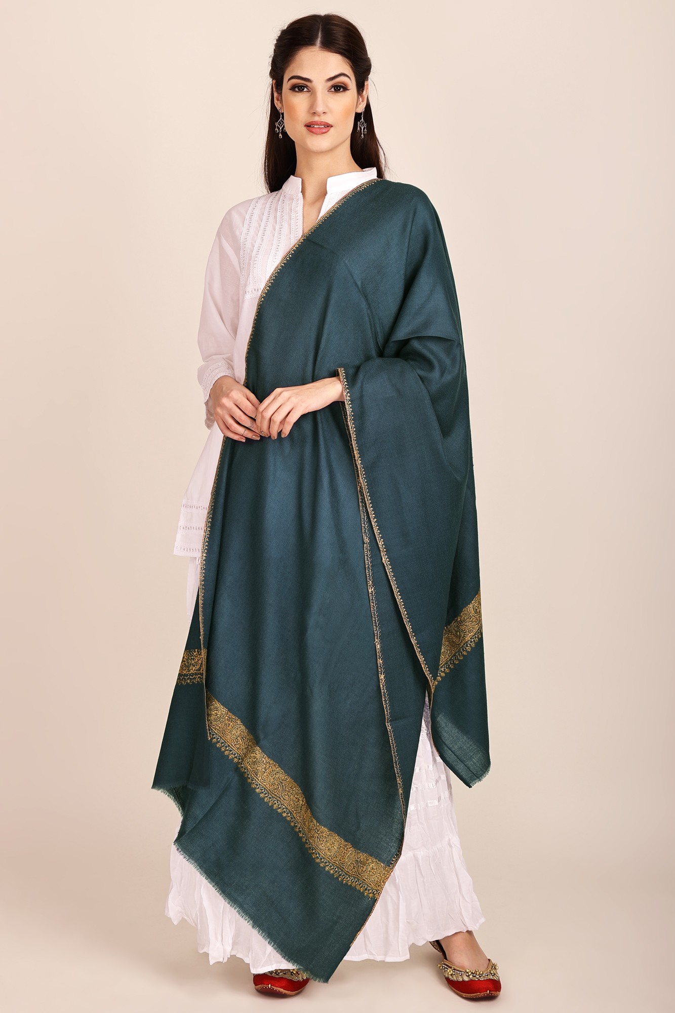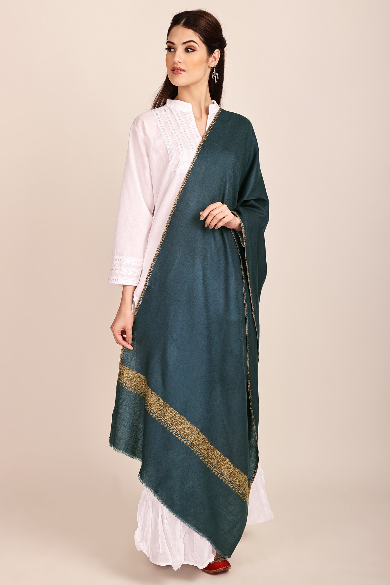 Tusha Scarf from Kashmir with Sozni Embroidered Border