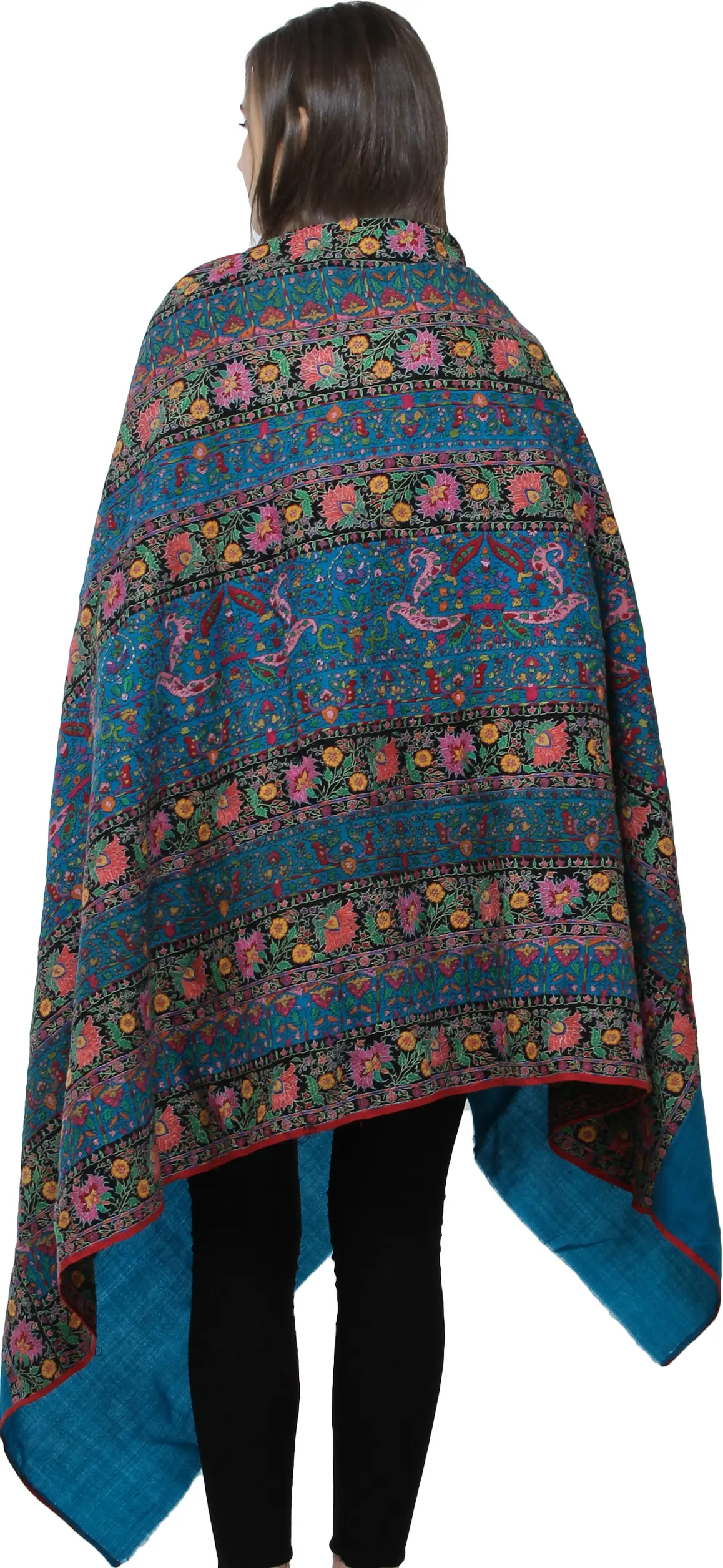 Rainbow Pure Pashmina Handloom Shawl with Traditional Khatrass Embroidery