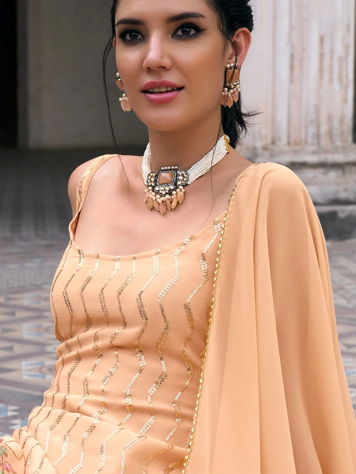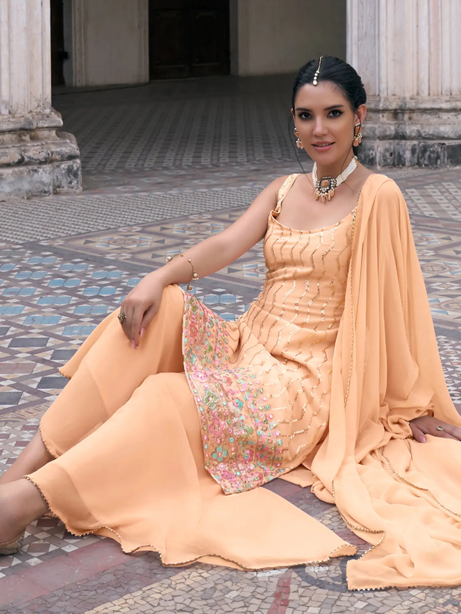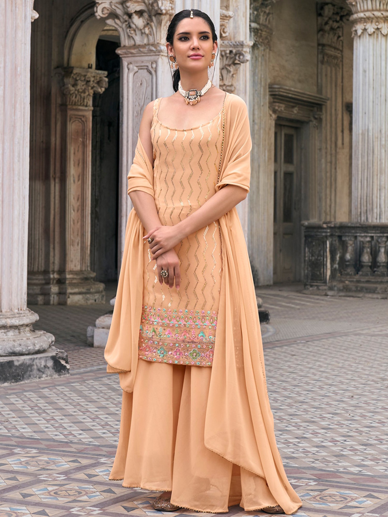 Embroidery Work And Sequence Work Georgette Kurti With Designer Sharara For Casual Occasion