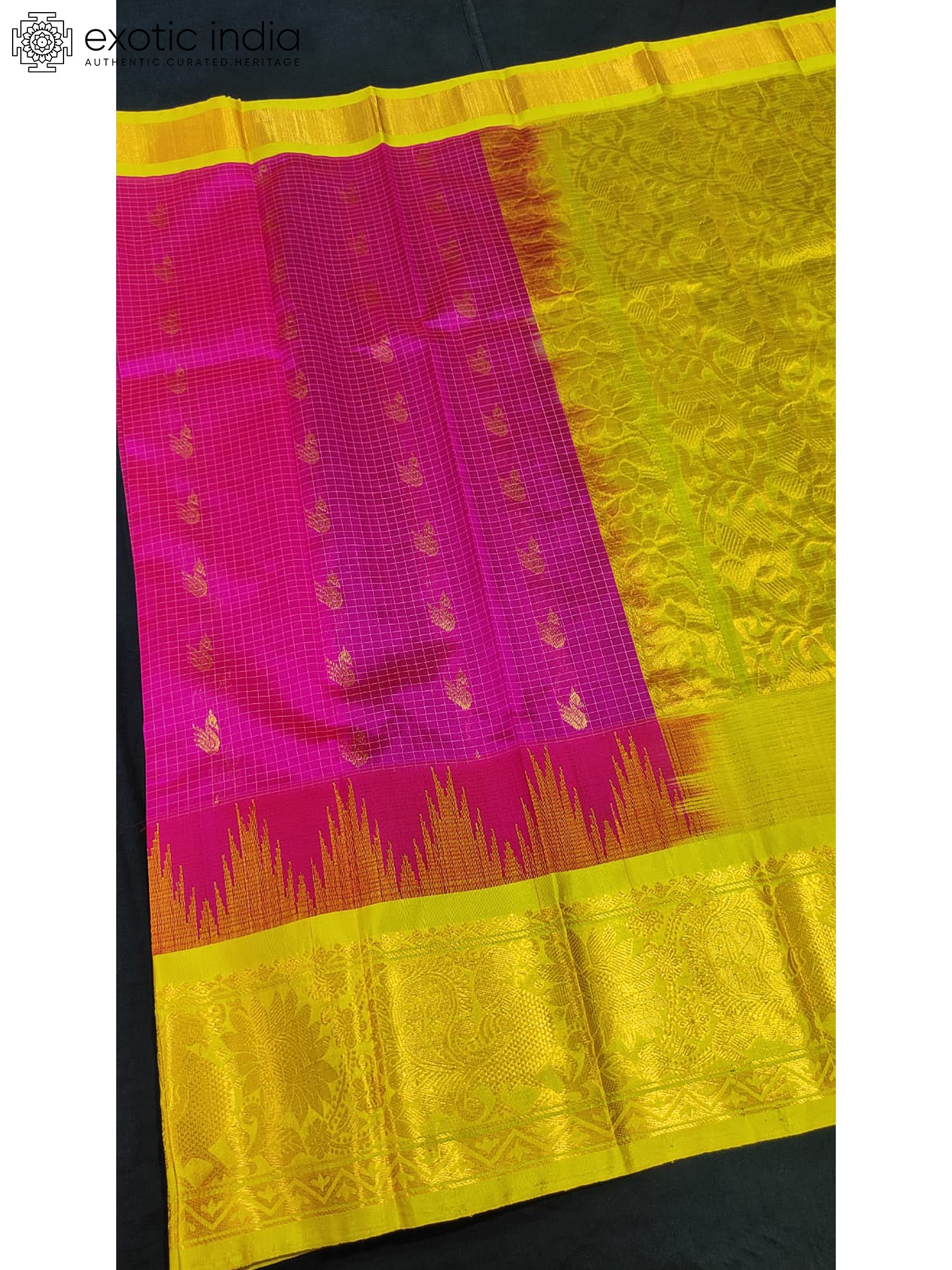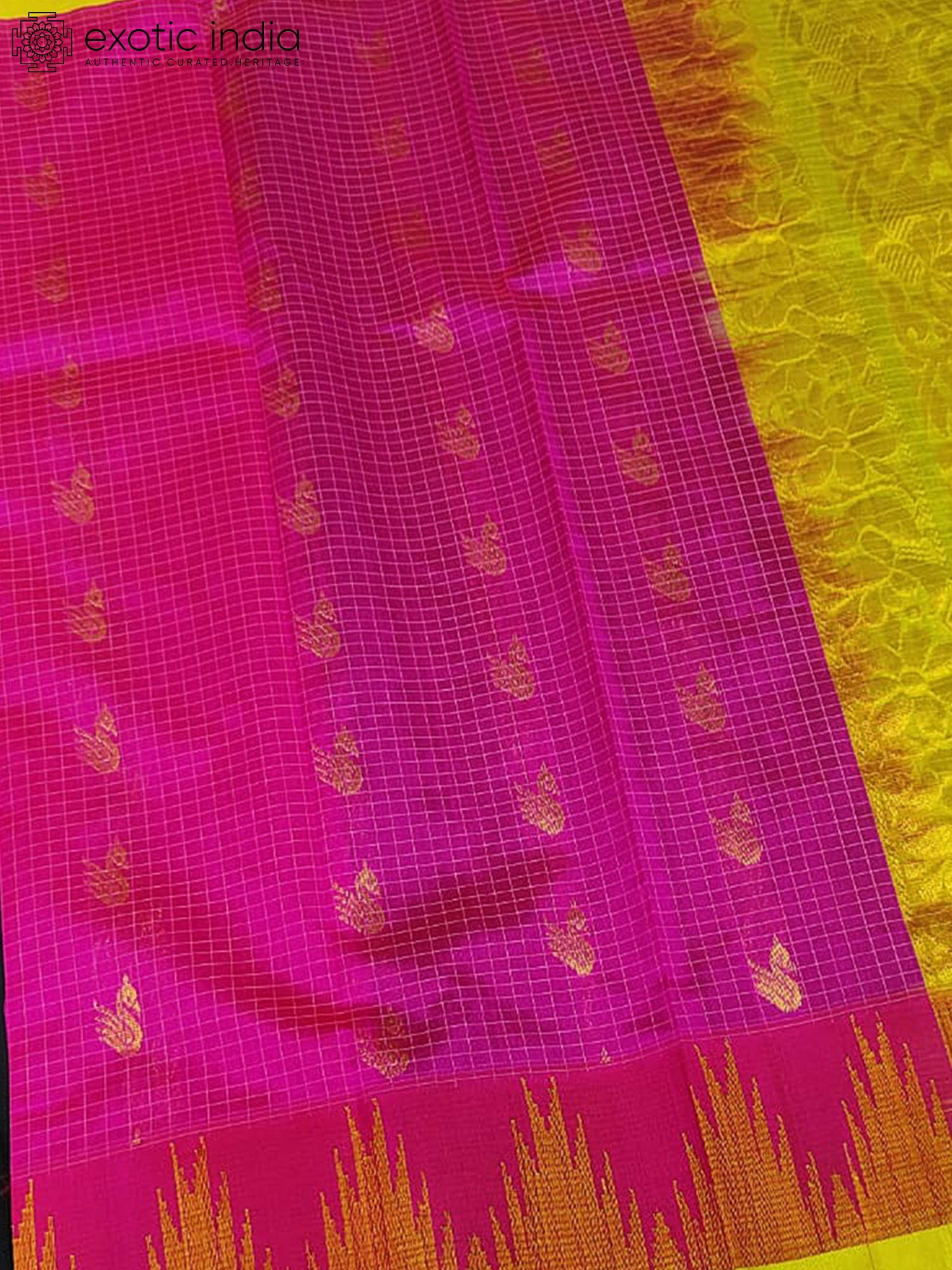 Deep-Pink Gadwal Pattu Silk Saree With Yellow Border