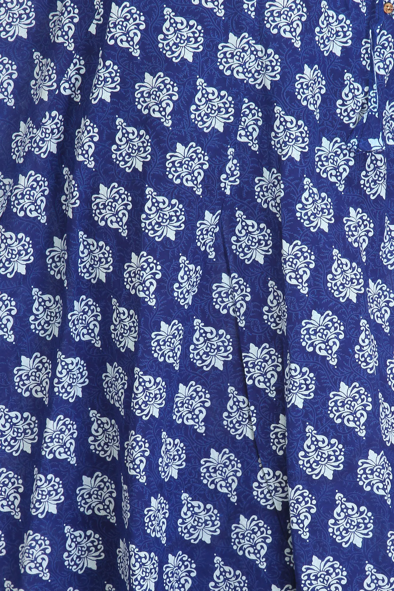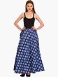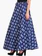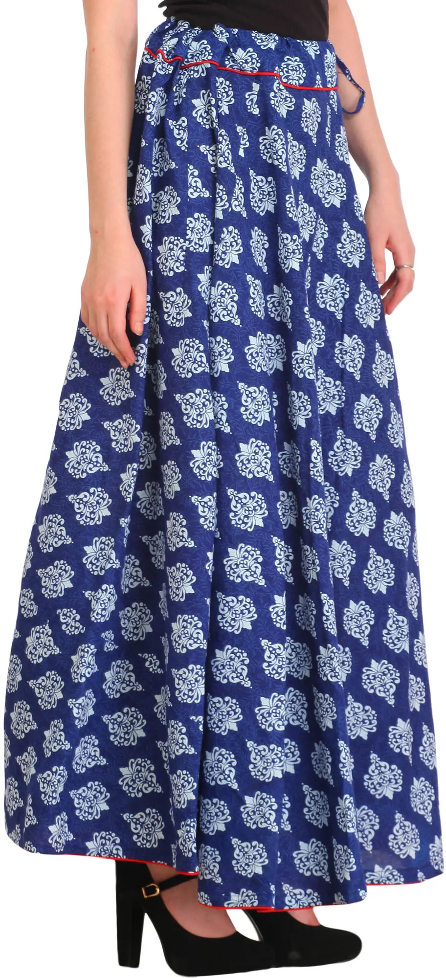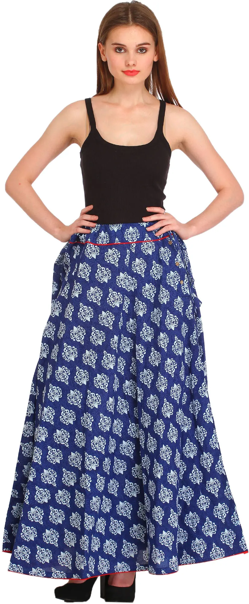 Deep-Ultramarine Long Skirt with Block-Printed Floral Bootis and Piping-work