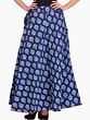 Dive into a world of captivating style with this exquisite long skirt, a true testament to artisanal craftsmanship. The deep ultramarine hue serves as a rich canvas for a mesmerizing block-printed pattern of delicate floral bootis. Each motif, rendered in a contrasting light shade, tells a story of traditional artistry, bringing a touch of bohemian charm and sophisticated flair to your wardrobe. This skirt is designed for those who appreciate the beauty of intricate details and the comfort of natural fabrics.