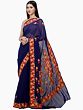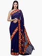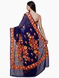Navy Blue Georgette Saree with Multicolor Aari Embroidered Floral Motifs
