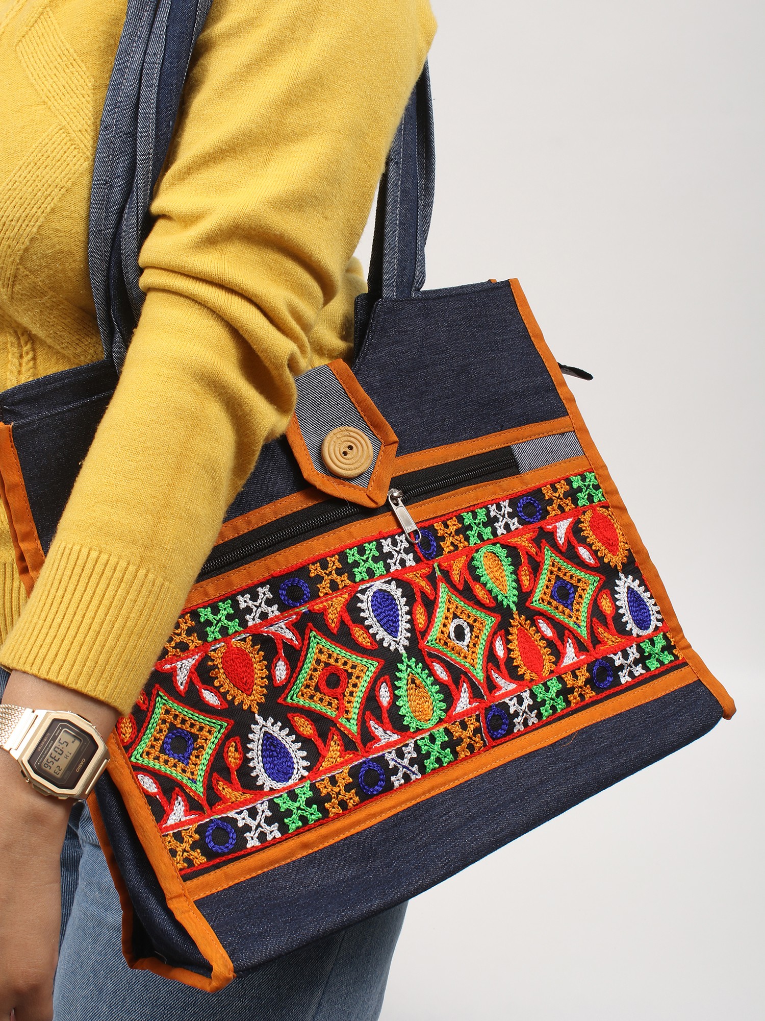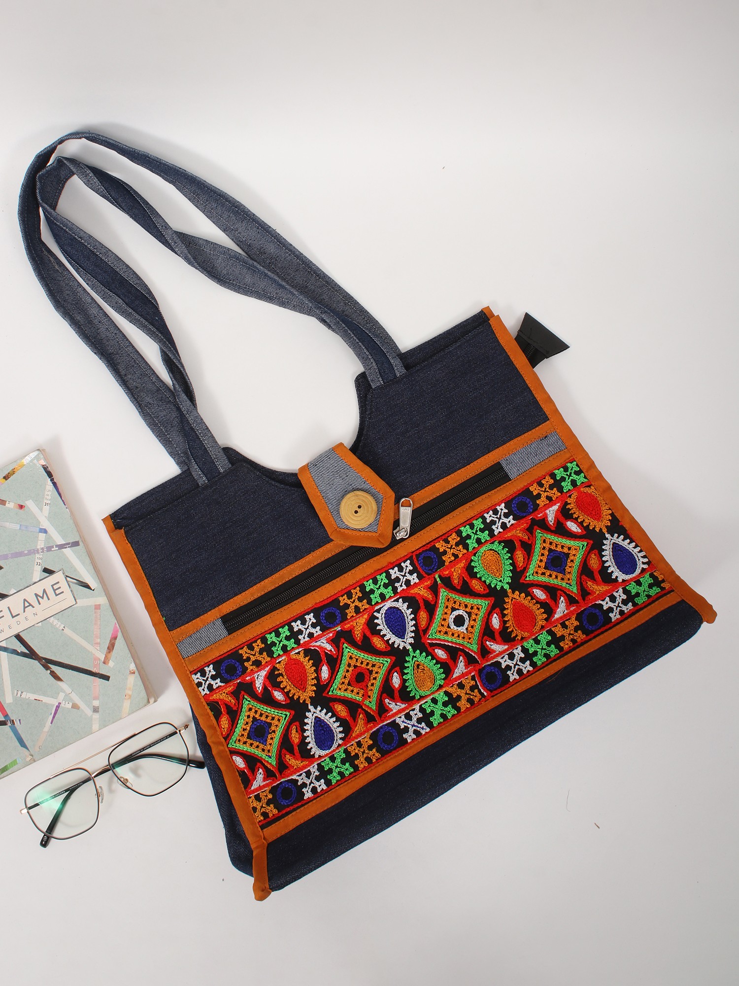 Unveiling its bohemian charm, this “Tote Bag” is a symbol of freedom and expression. Each expertly crafted stitch narrates a tale of individuality and artistry. Its surface is adorned with handmade patchwork, creating a fascinating tapestry. Perfect for the free-spirited soul, it carries your essentials while reflecting your unique flair. Whether strolling through city streets or lounging in cafes, this denim beauty is your steadfast companion. Embrace the allure of wanderlust and make a statement with every step.