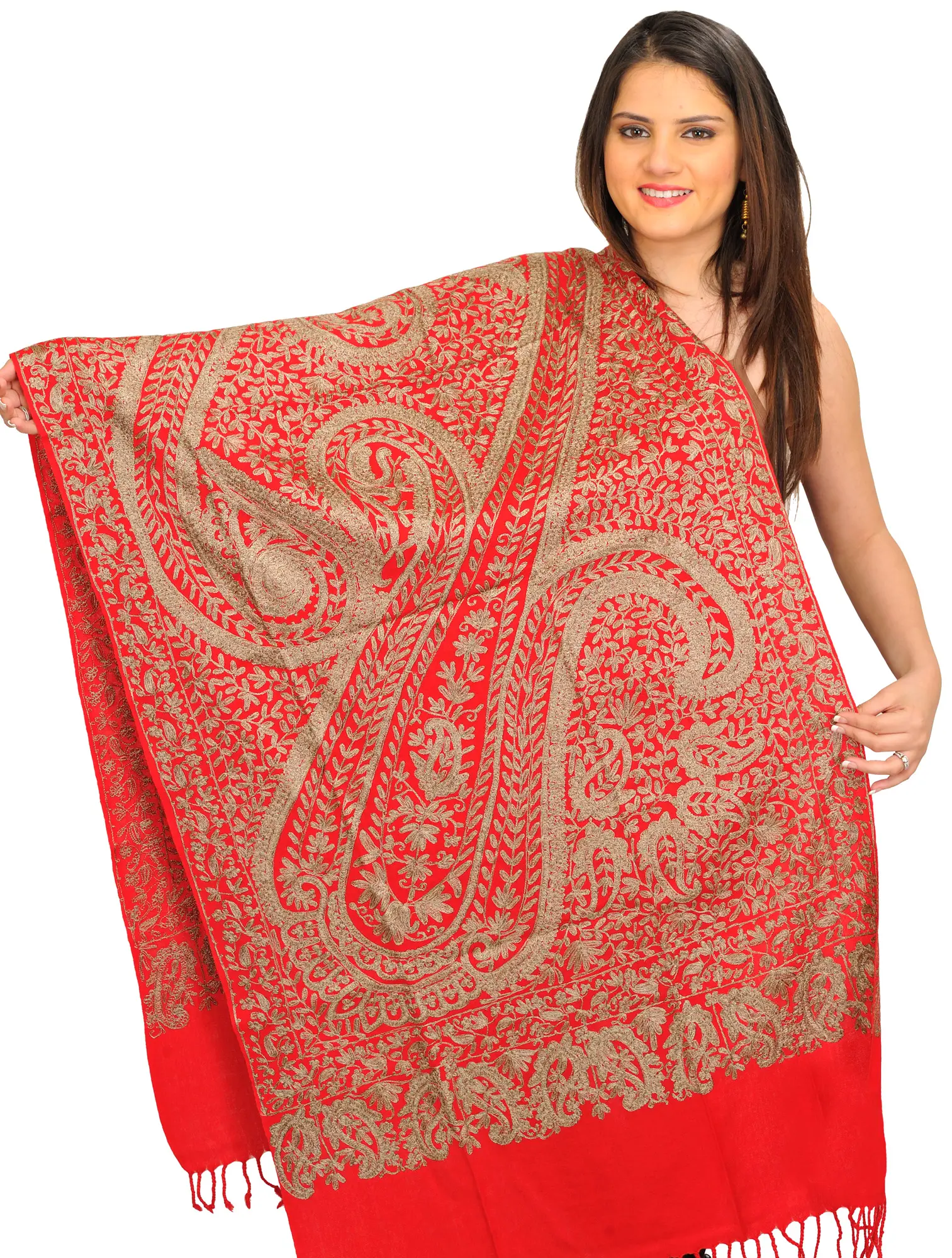 Kani Stole from Amritsar with Crewel Embroidered Flowers All-Over