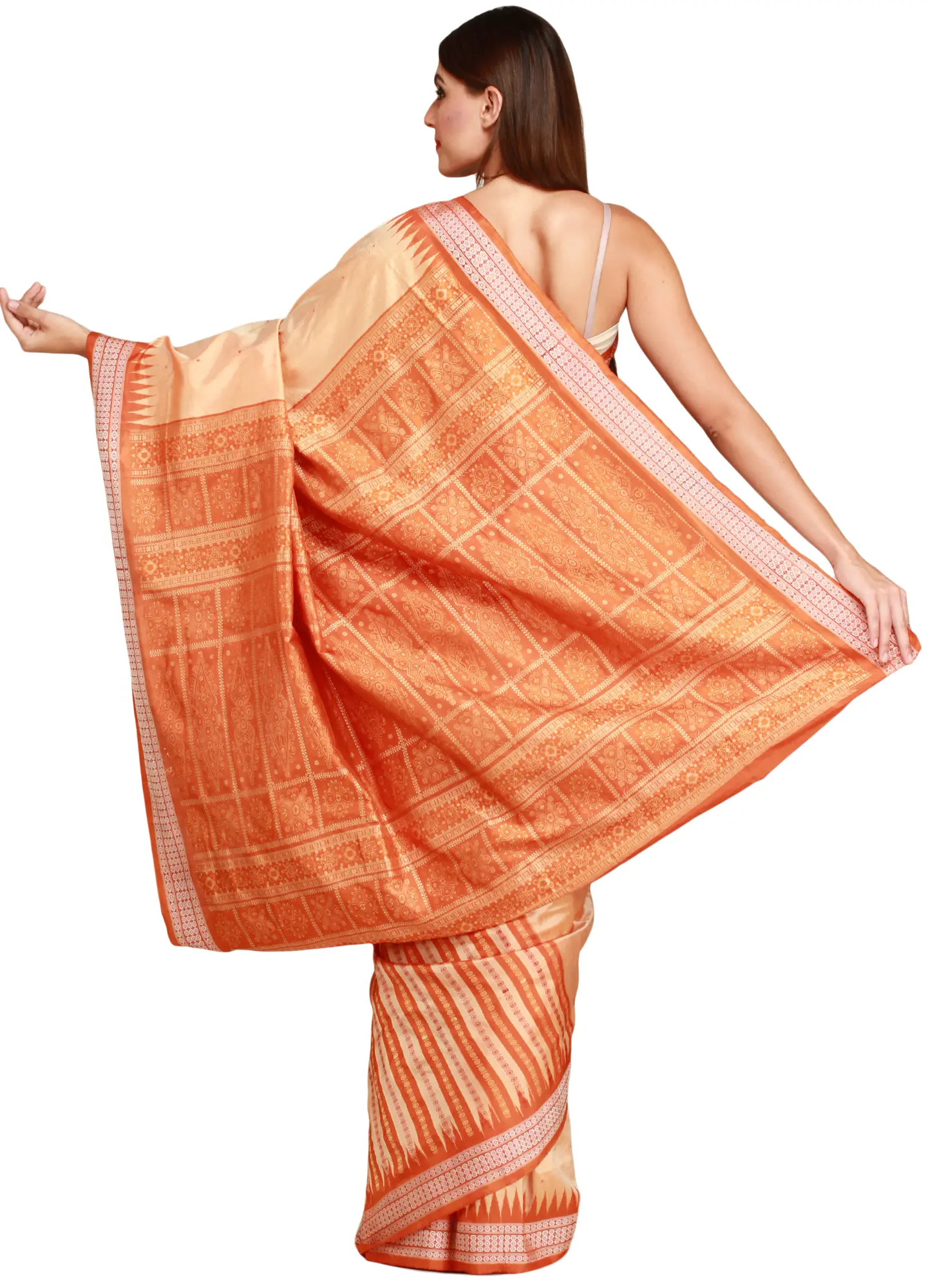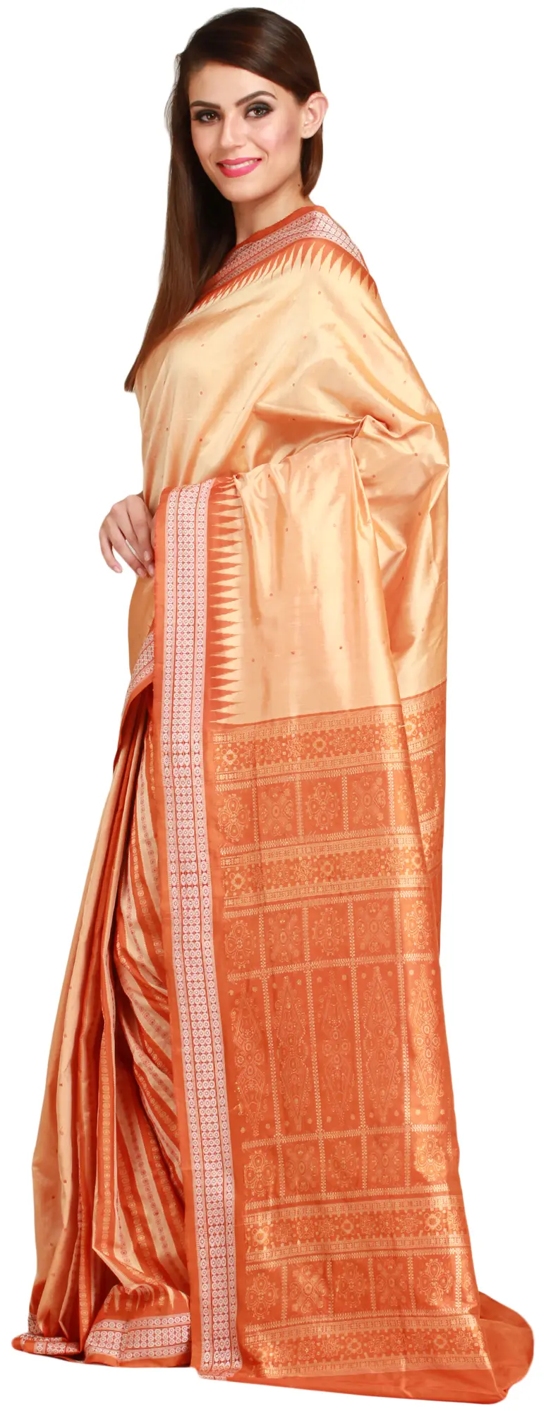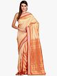 Cannoli-Cream Tussar Silk Handloom Saree with Woven Fish and Ethnic Motifs from Chhattisgarh