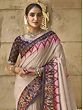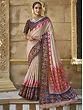 Pale-Chestnut Organza Sequins, Zari & Mirror Work With Flower Border Saree For Casual Occasion