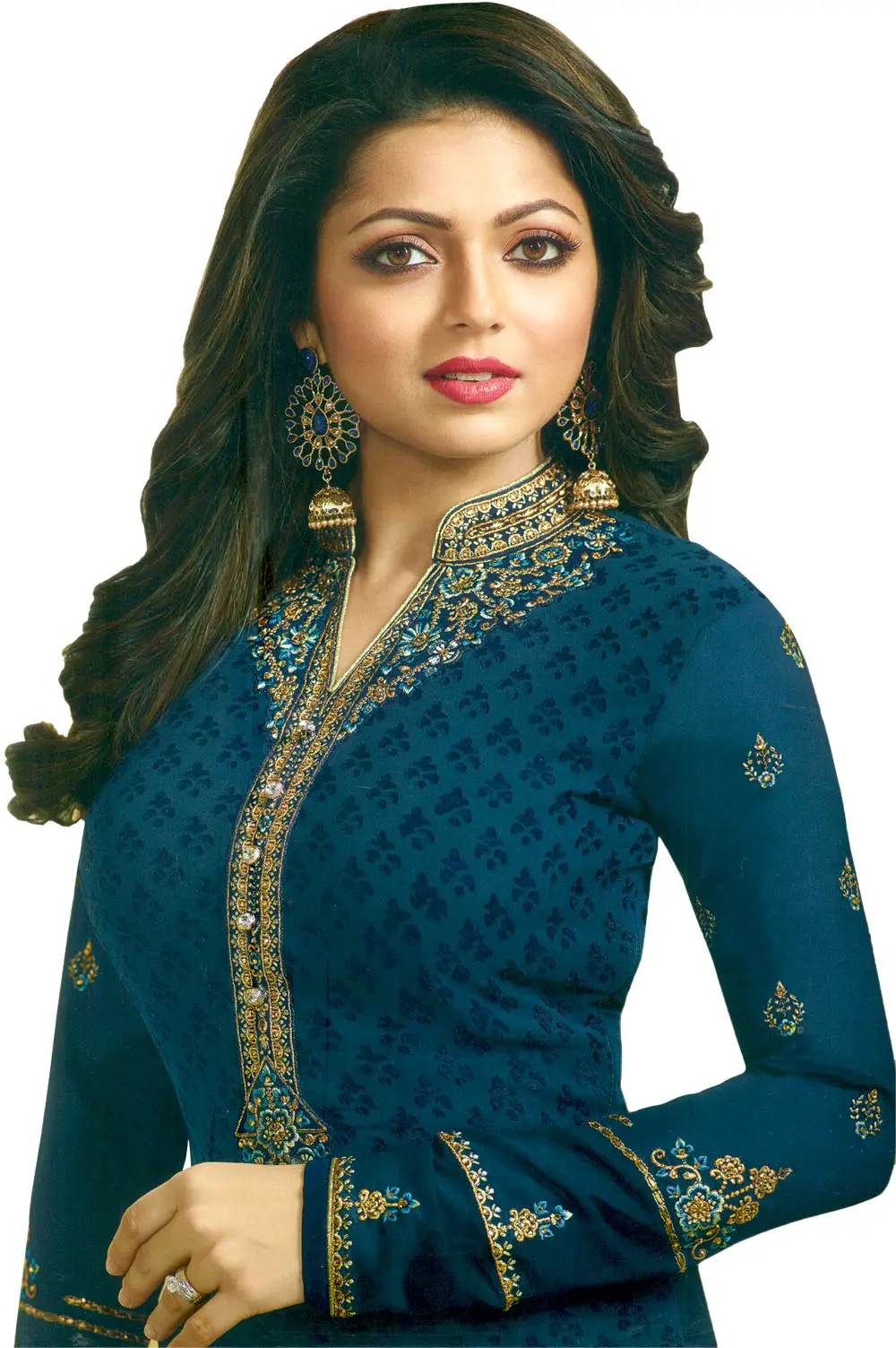 Long Churidar Salwar Kameez Suit with Zari-Embroidered Florals and Crystals