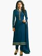 Aqua-Sky Designer Long Churidar Suit with Zardozi Work on Kameez Satin Churidar
