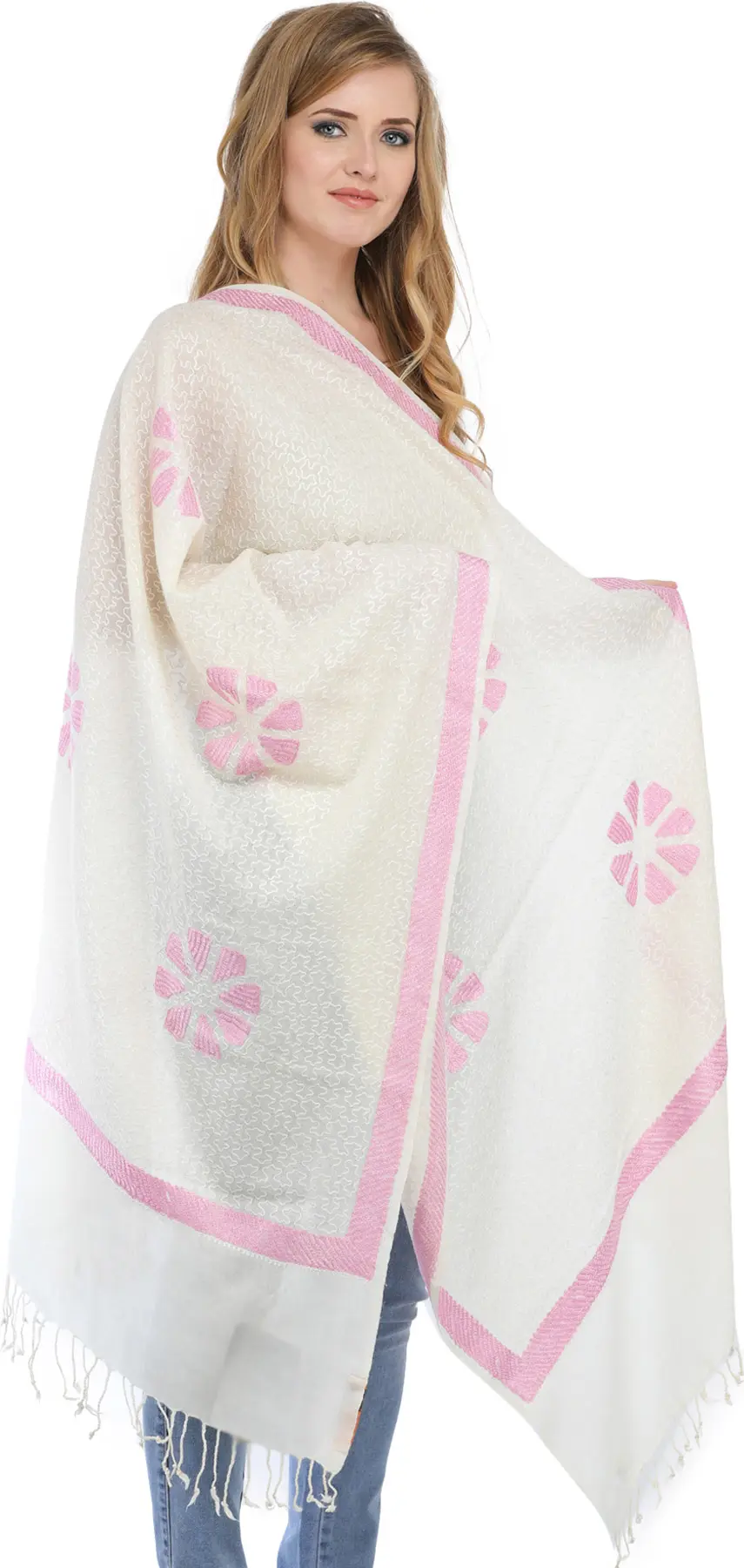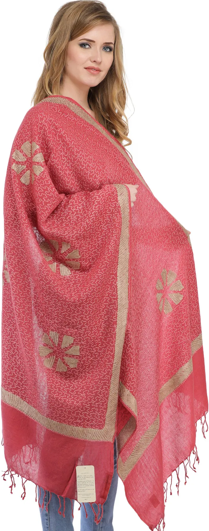 This pure wool stole is a must-have for every woman. It has black flowers embroidery making it one of a kind and perfect to wear with any outfit. The full-body design of the stole makes it stand out from all other stoles available in the market. This designer stole can be worn on special occasions like weddings, parties or any other event that requires you to dress up elegantly. This product is the perfect combination of traditional and modern with its unique design. The black borders make it easy to match any outfit without clashing colours. This pure wool stole makes an excellent gift for your loved ones or anyone who appreciates handcrafted products. The beauty of black colour mixed with red colour is the central theme of this designer Amritsari stole. It has a beautiful combination of pure embroidery work done on it. The design, texture and colours are very appealing and eye-catching.