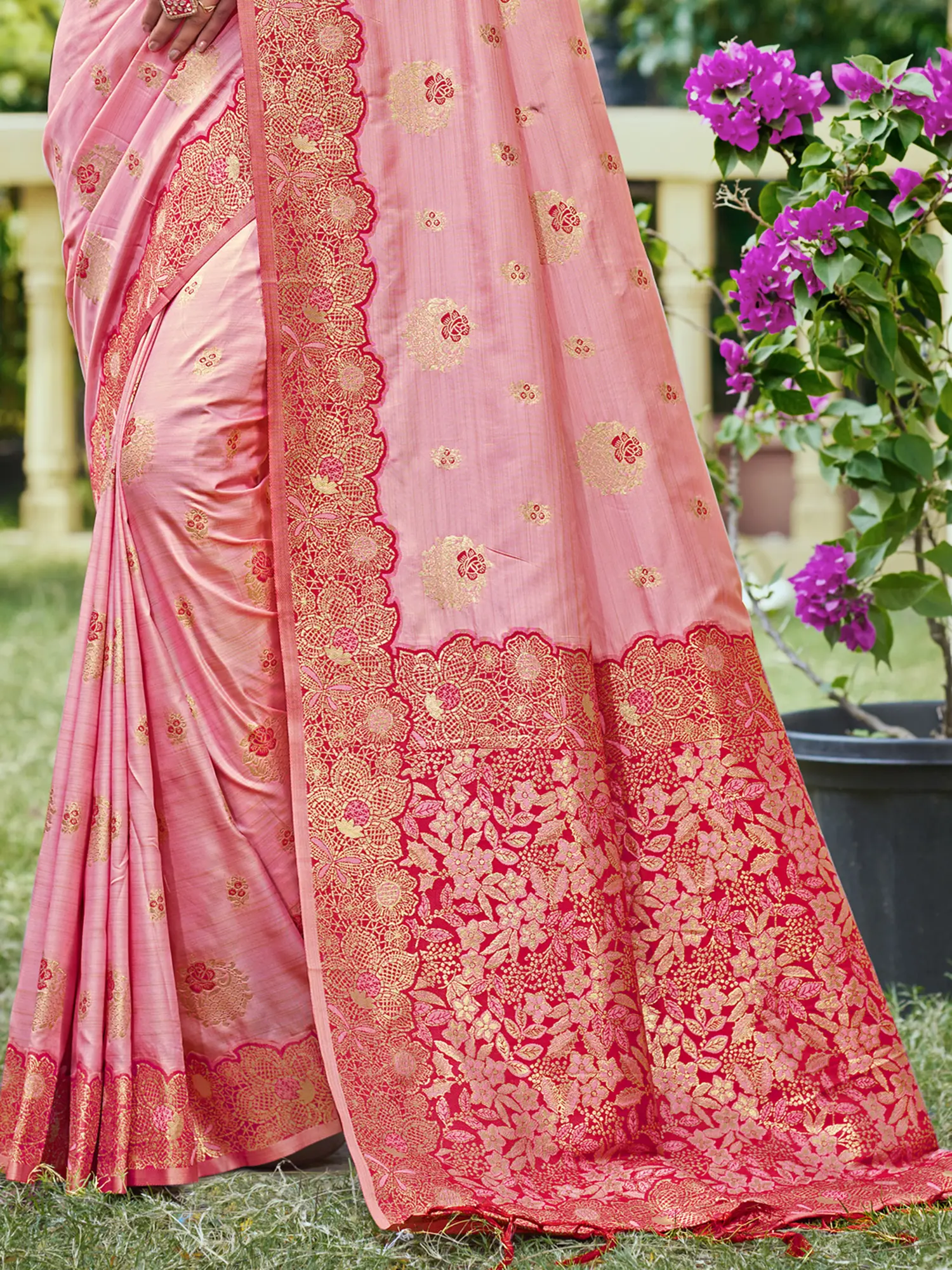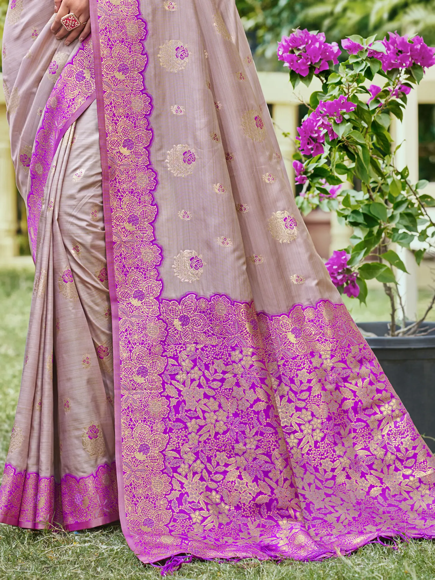 Festival-Fuchsia Designer Saree with Heavy Thread-Sequins Embroidered Flowers and Zari Work