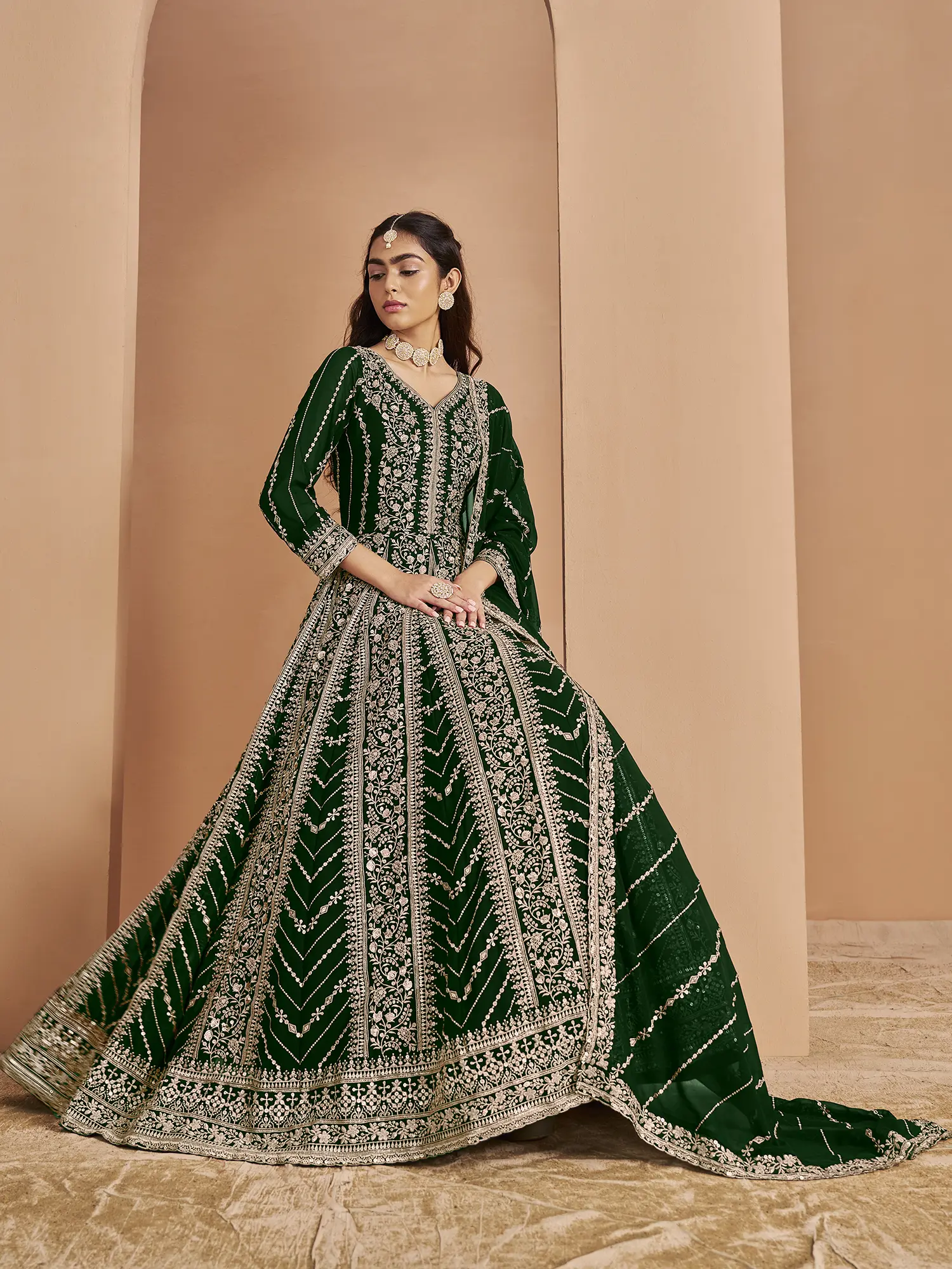 This ensemble is an ideal choice for a myriad of celebratory events. Whether you're attending a grand wedding, a vibrant festive gathering, a formal party, or any occasion that calls for sophisticated ethnic wear, this gown promises to make a memorable statement. Its timeless design and opulent detailing ensure you will feel confident, elegant, and utterly beautiful. Designed for the discerning woman who appreciates fine craftsmanship and classic style, this outfit is more than just clothing; it's an heirloom in the making.