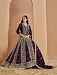Women's Velvet Embroidered Gown Set With Bottom And Dull Organza Print Dupatta For Party And Wedding Wear