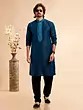 Wedding Kurta Pajama Set with Embroidered Collar and Jacquard Woven Paan Leaves
