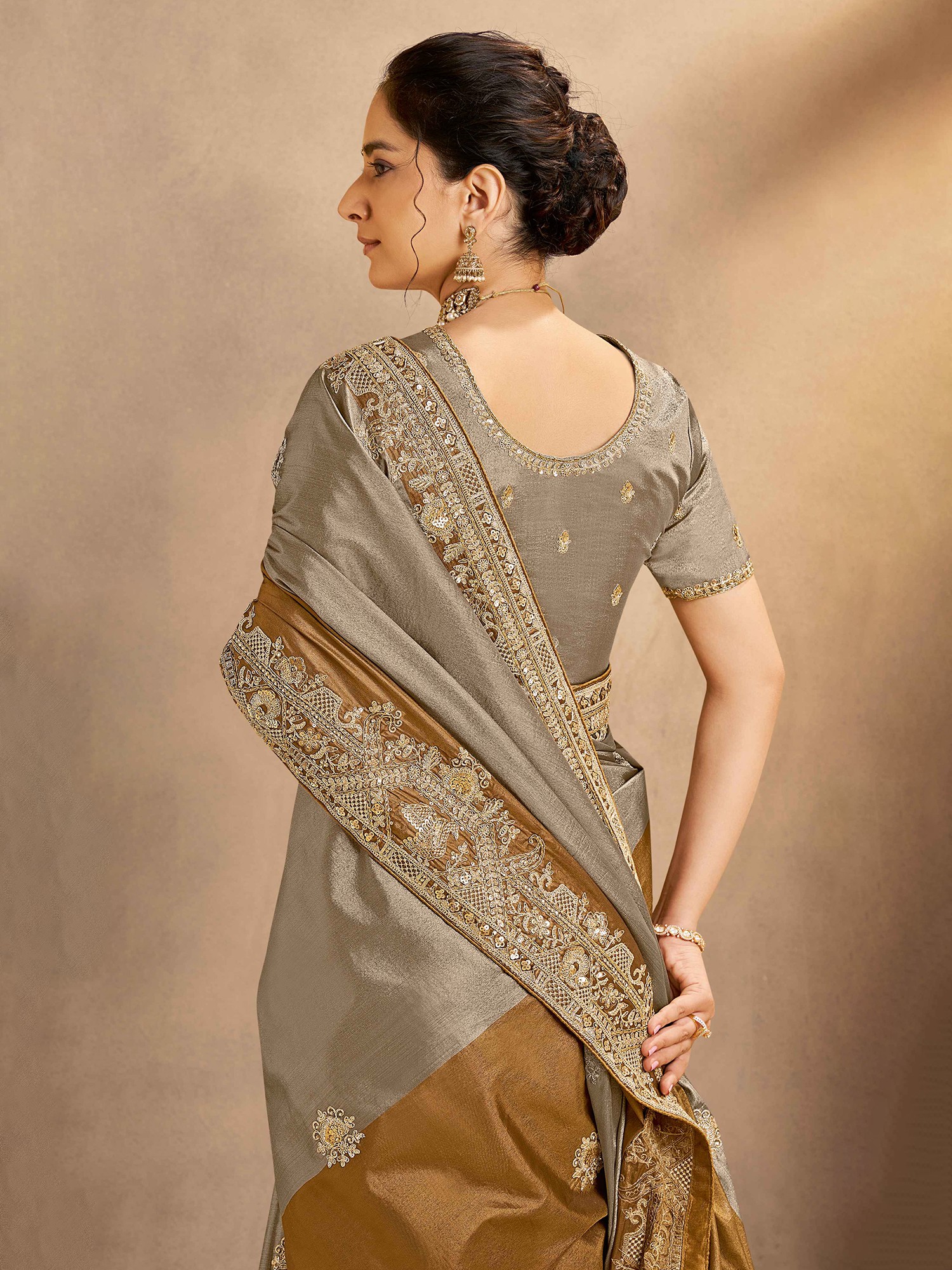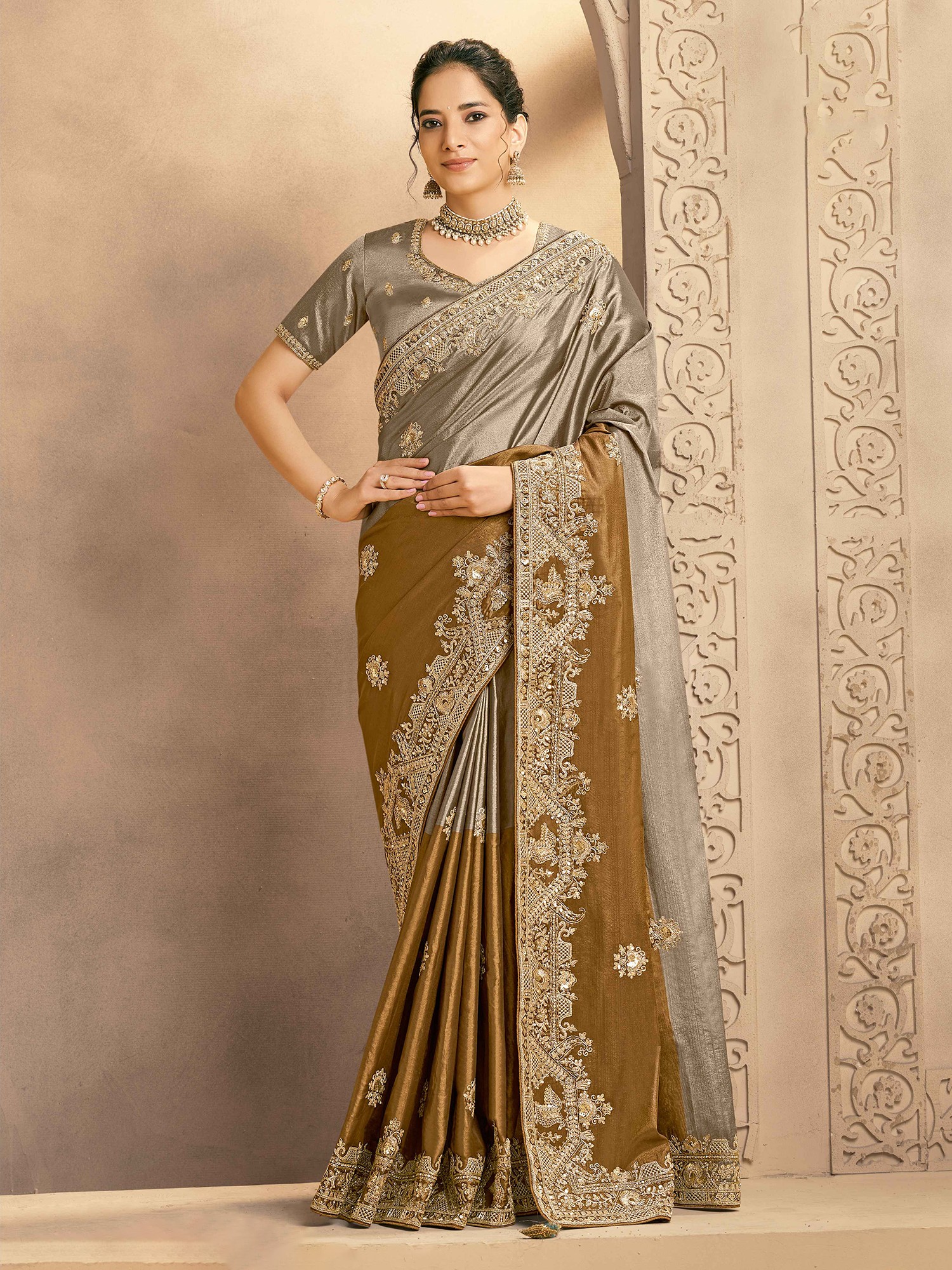 Designer Metallic Kora Zari Silk Saree Featuring Intricate Zardozi And Cutdana Handwork For Wedding Festive And Party Wear