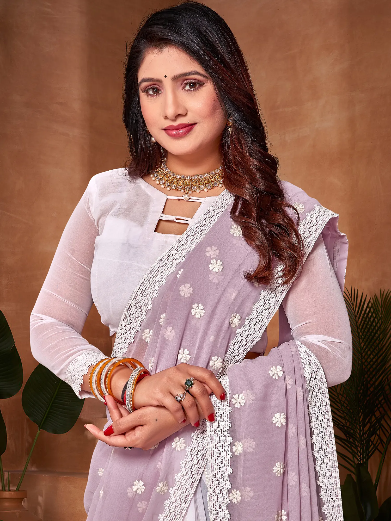 This georgette saree is designed to make you the center of attention at weddings, parties, festivals, and other special events. The combination of contemporary design and timeless embroidery makes it a versatile addition to your ethnic wear collection. Pair it with statement jewelry and elegant heels to complete your glamorous look. The lightweight and breathable nature of georgette ensures comfort without compromising on style, allowing you to move with ease and confidence throughout the event. ––––––––––––––––––––