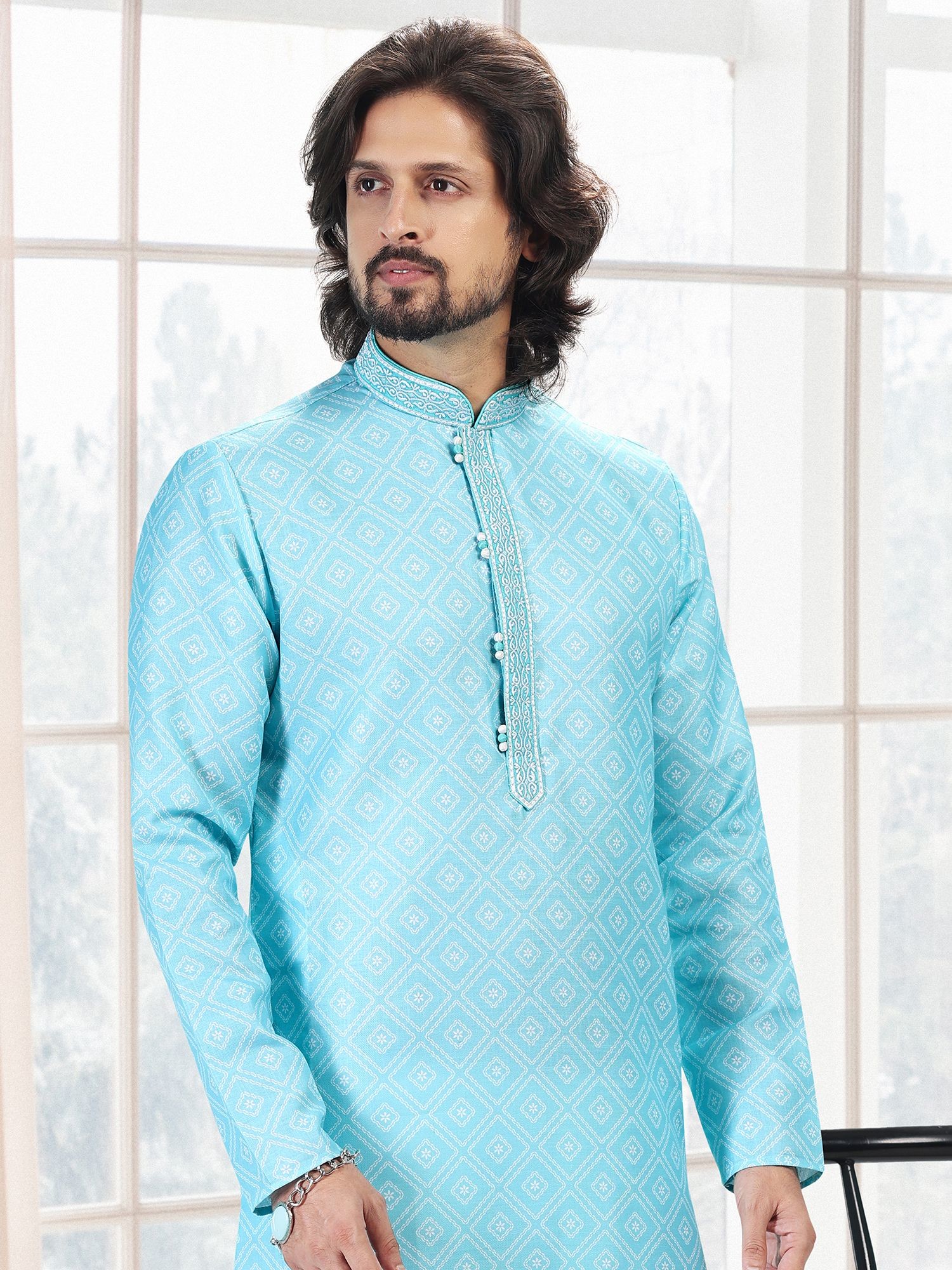 Elegant Brocade Kurta Pajama Set with Thread and Zari Work on Collar-Placket