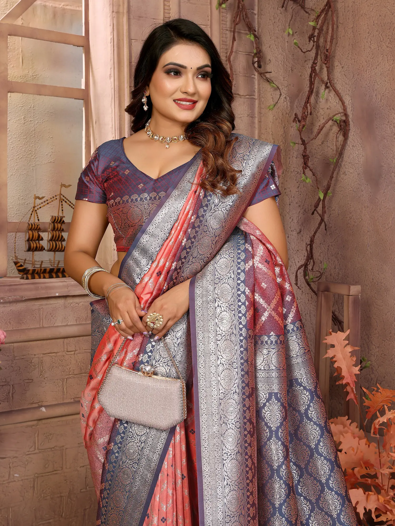 Lichi Silk Floral Motifs Weaving Work Festive Wear Saree With Matching Blouse