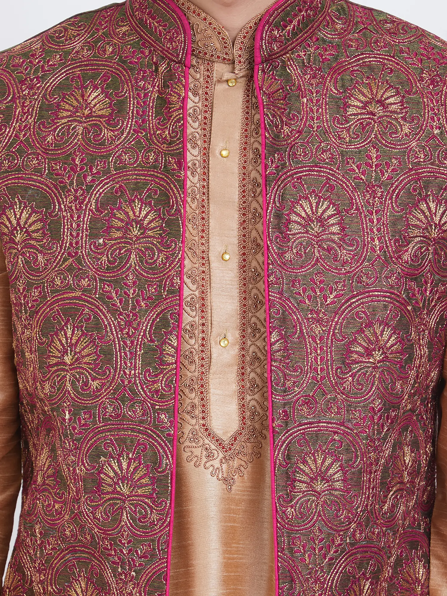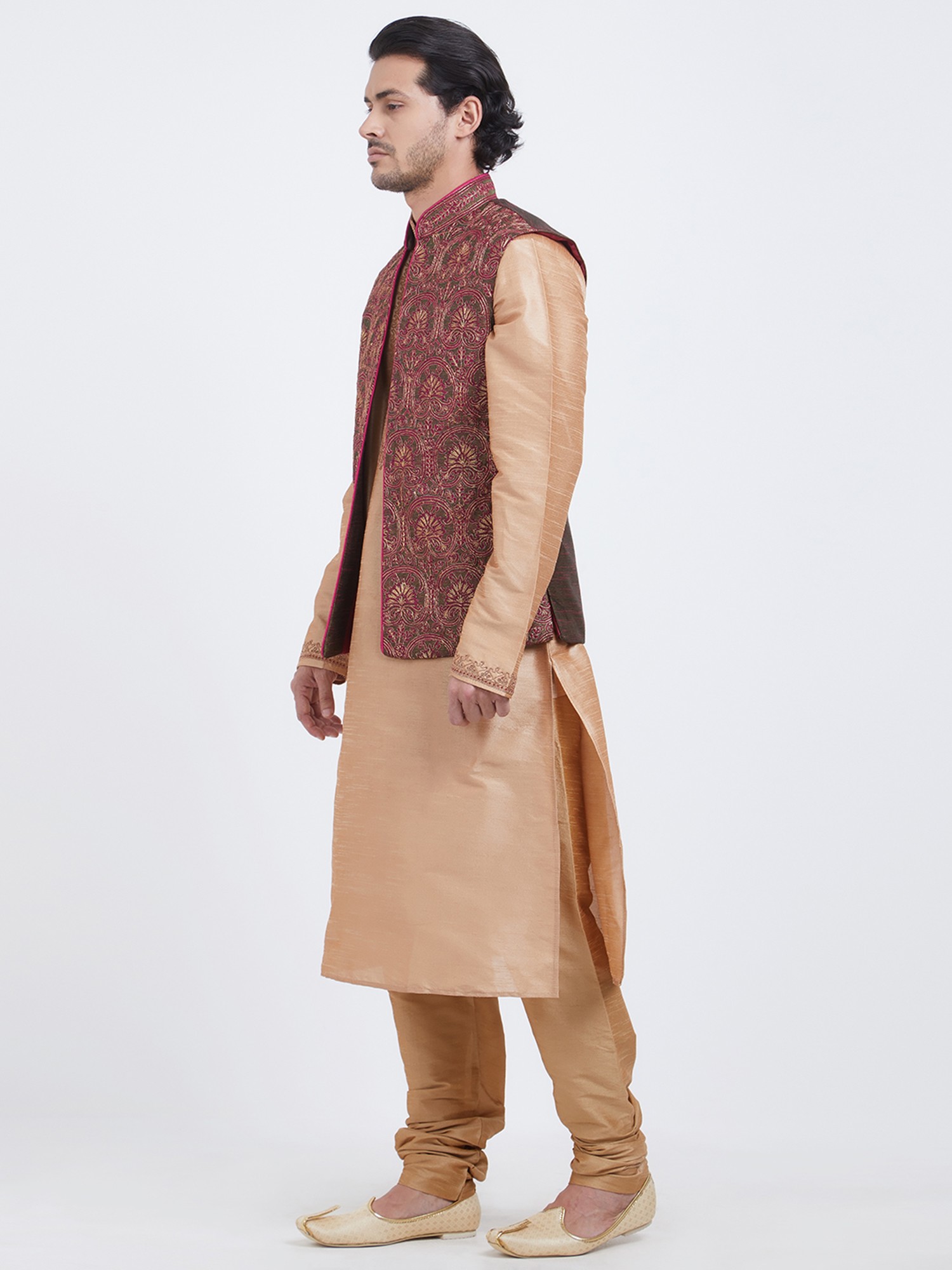 This ensemble draws inspiration from centuries of rich cultural heritage, embodying the spirit of Indian tradition and celebration. It is a modern interpretation of classic ethnic wear, designed for the contemporary gentleman who respects and cherishes his roots. Wearing this set connects you to a legacy of artistry and festivity, making it more than just clothing, but a statement of identity and pride.