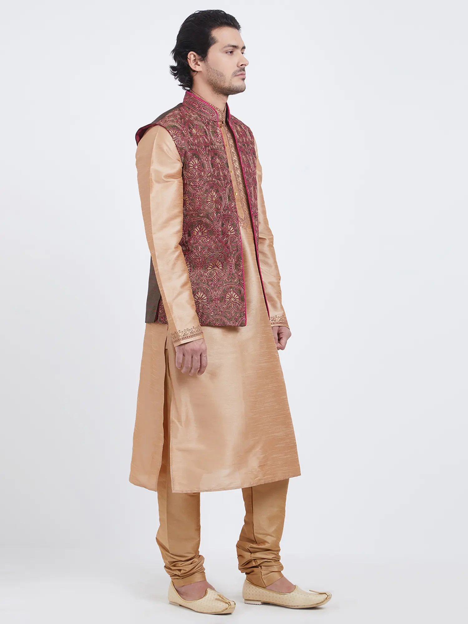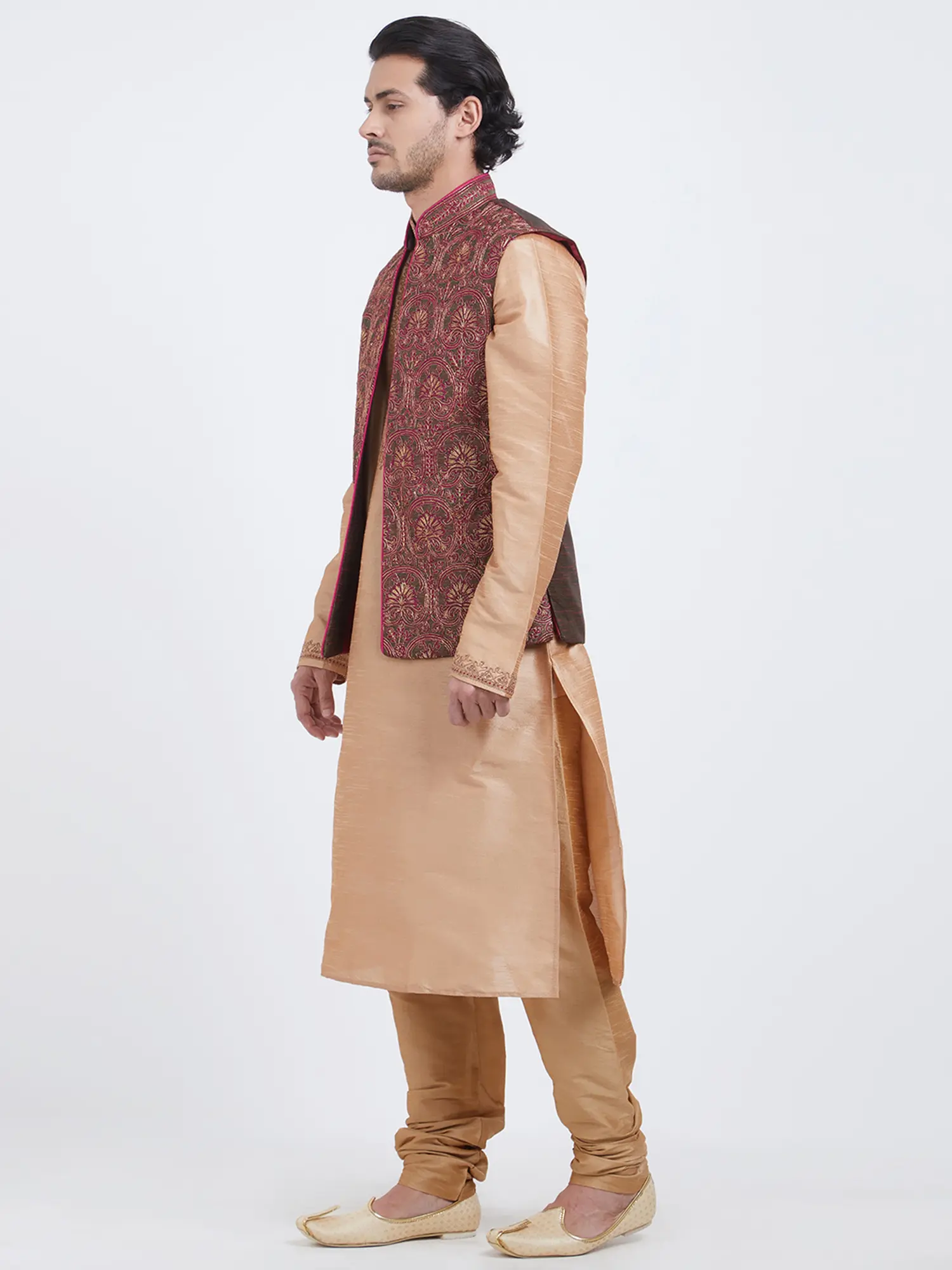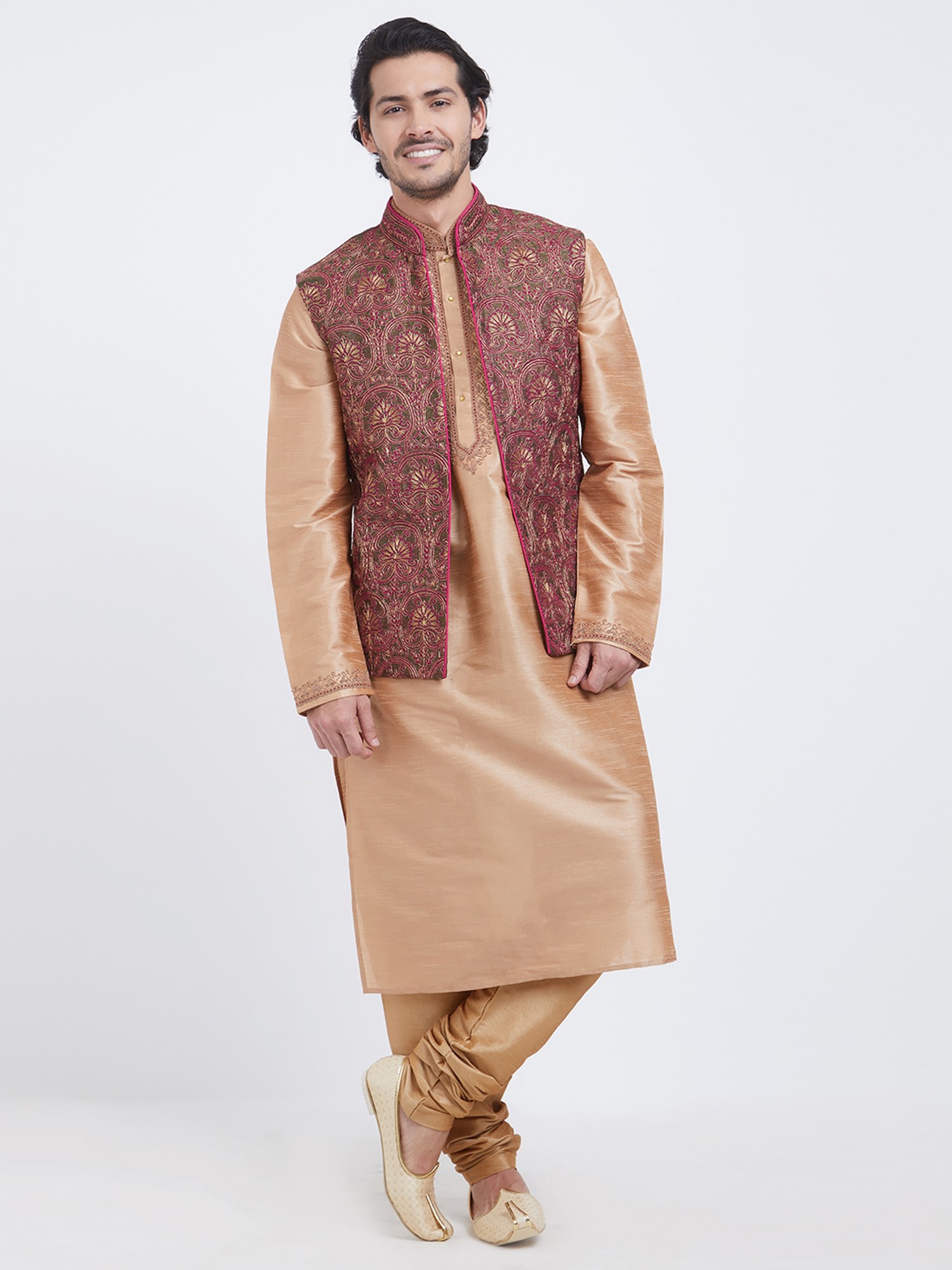 Designer Traditional Wear: Art Silk Kurta Pajama & Embroidered Nehru Jacket for Men