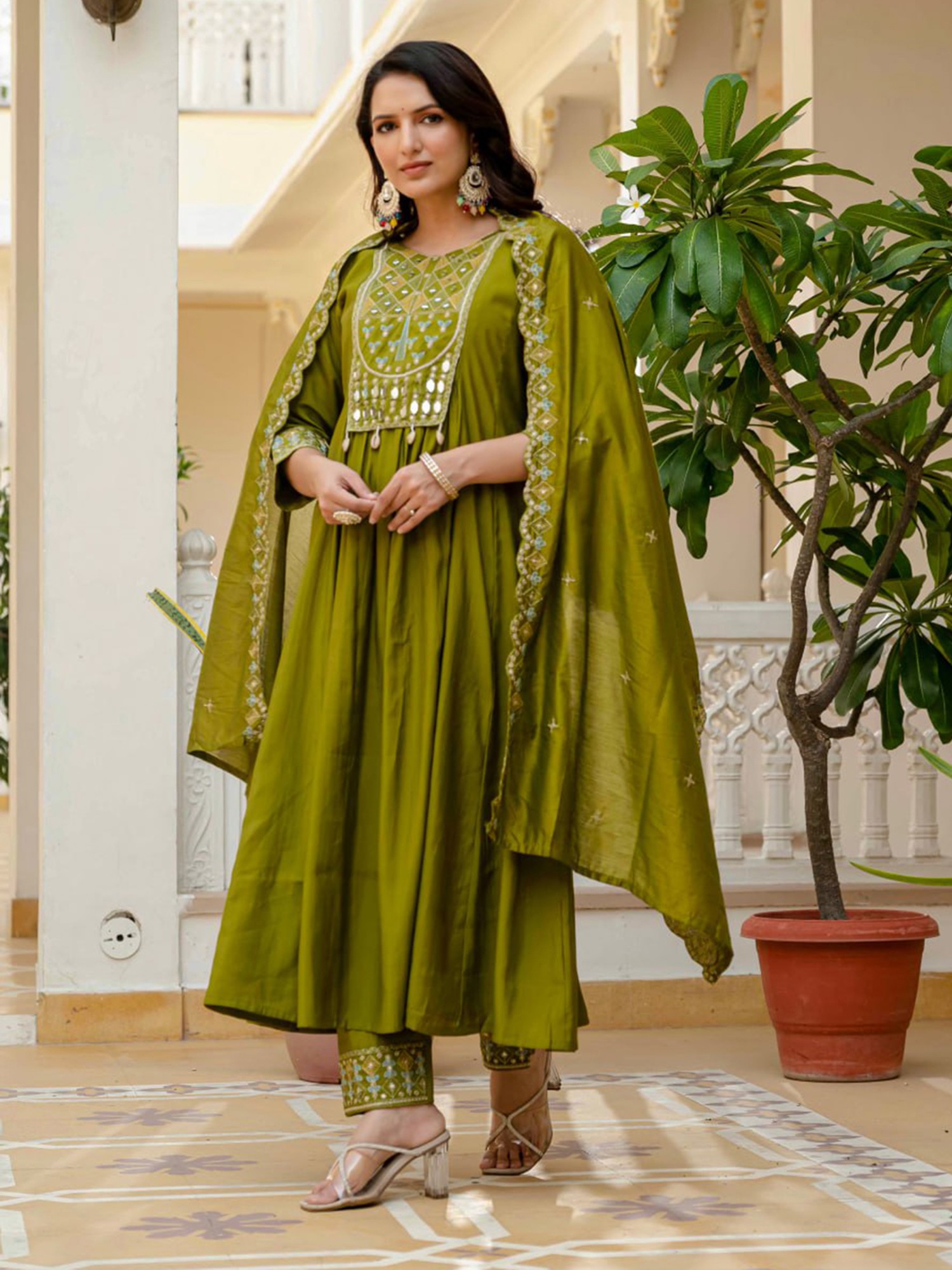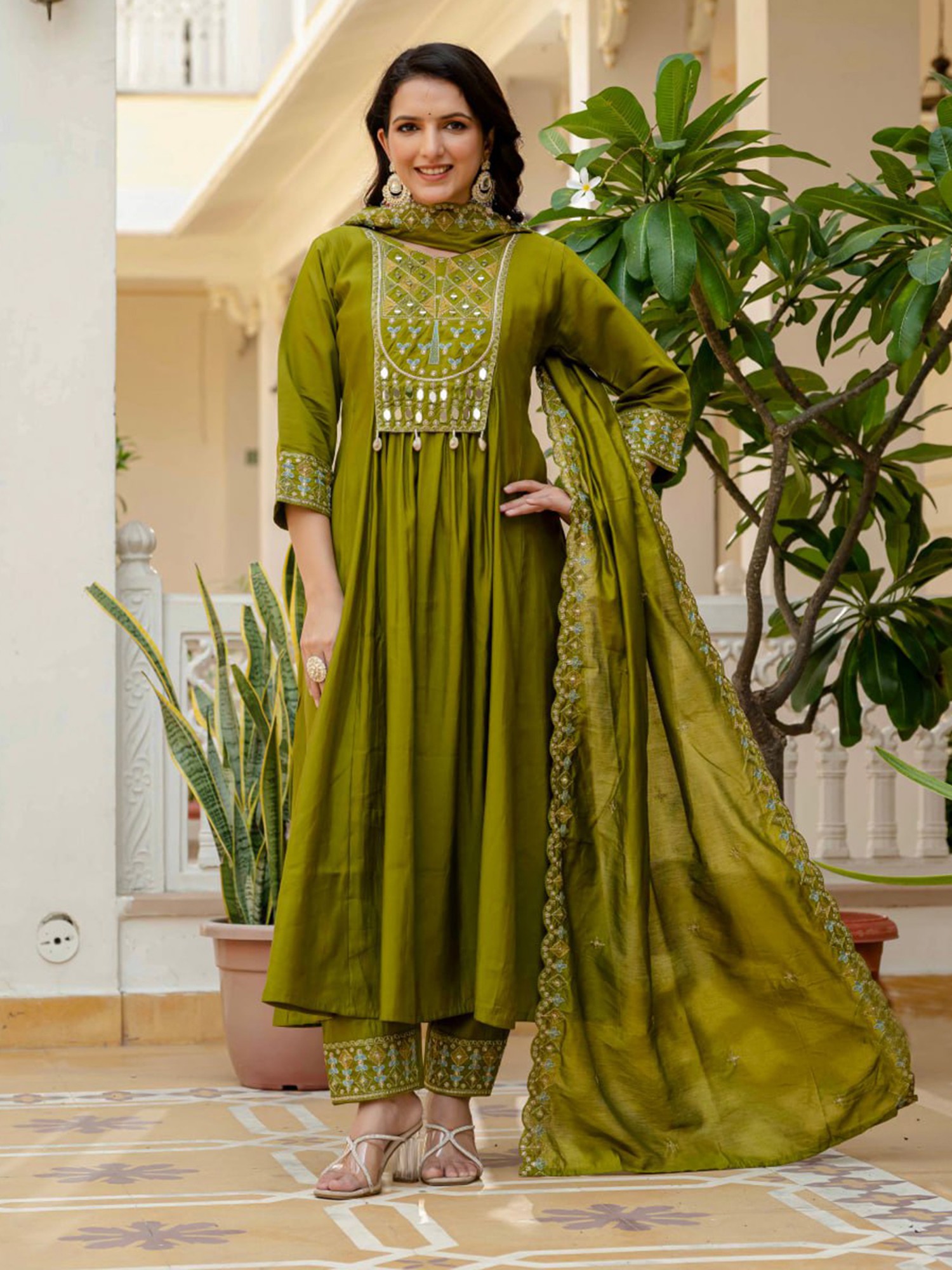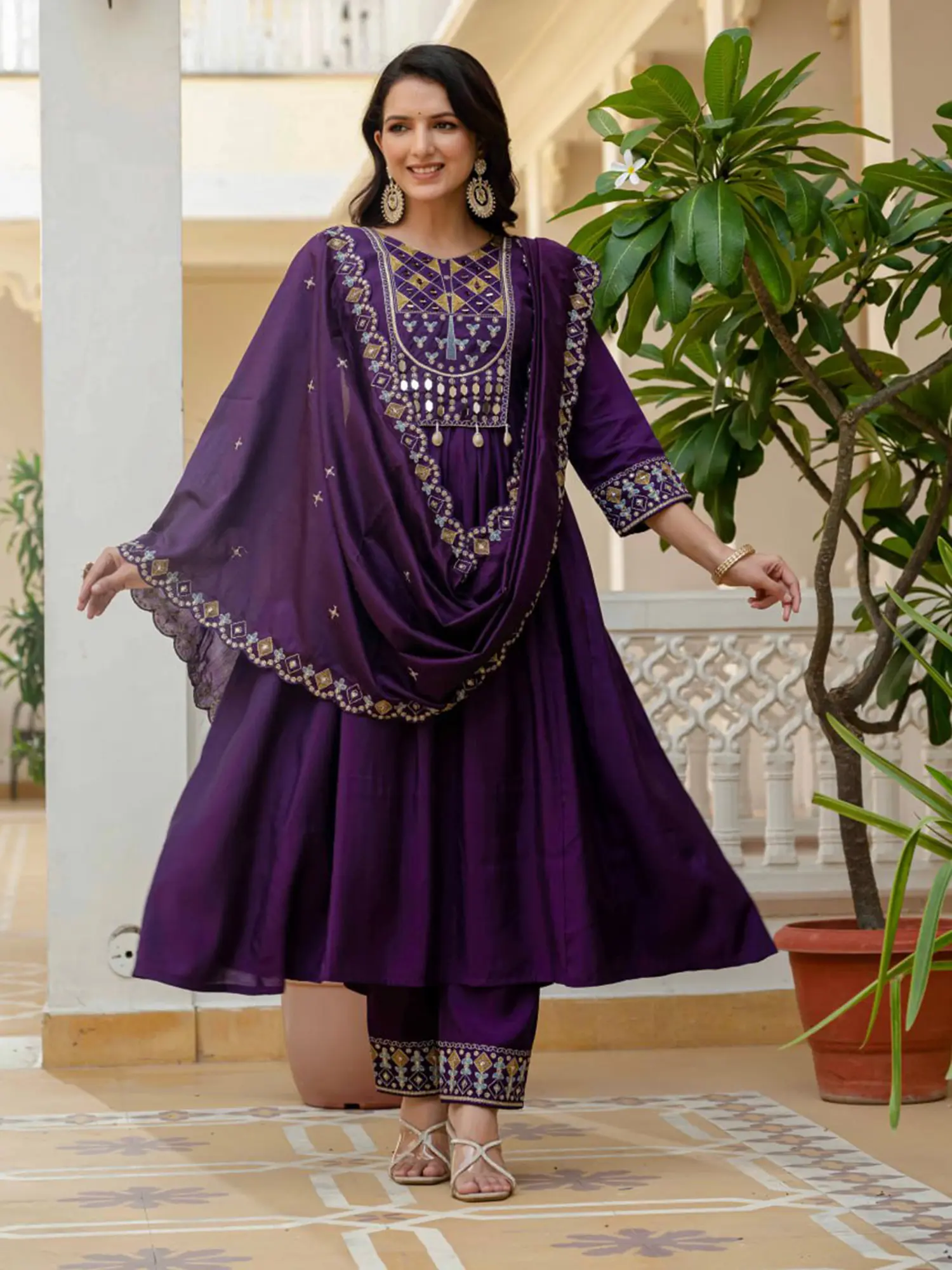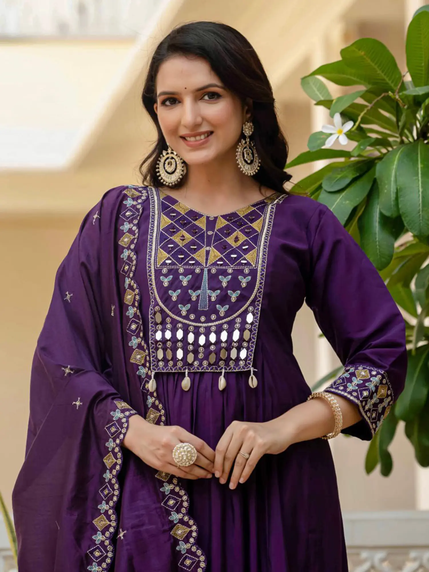 This style draws inspiration from the timeless elegance of traditional Indian wear, reimagined for the contemporary connoisseur. The Anarkali, historically associated with royalty and celebration, brings a sense of grandeur and festivity to any occasion. The use of vibrant embroidery and mirroring reflects a rich cultural tapestry, celebrating heritage with a modern sensibility.