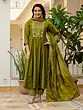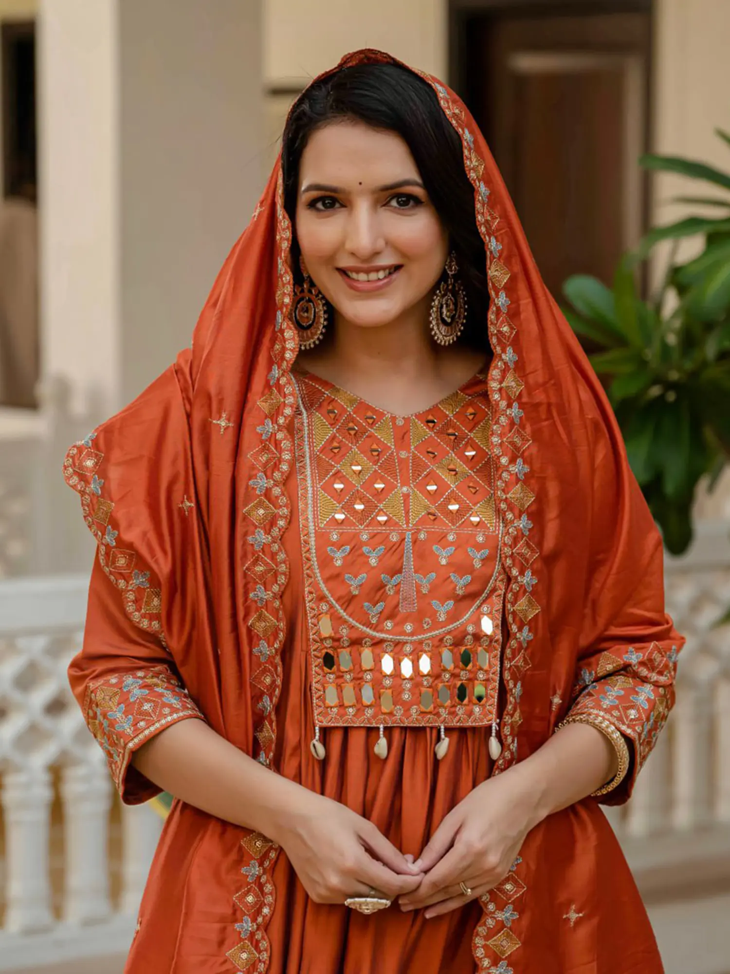 Designer Viscose Roman Silk Anarkali Suit With Bottom And Dupatta Heavy Multi Thread Embroidery And Real Mirror Hand Work