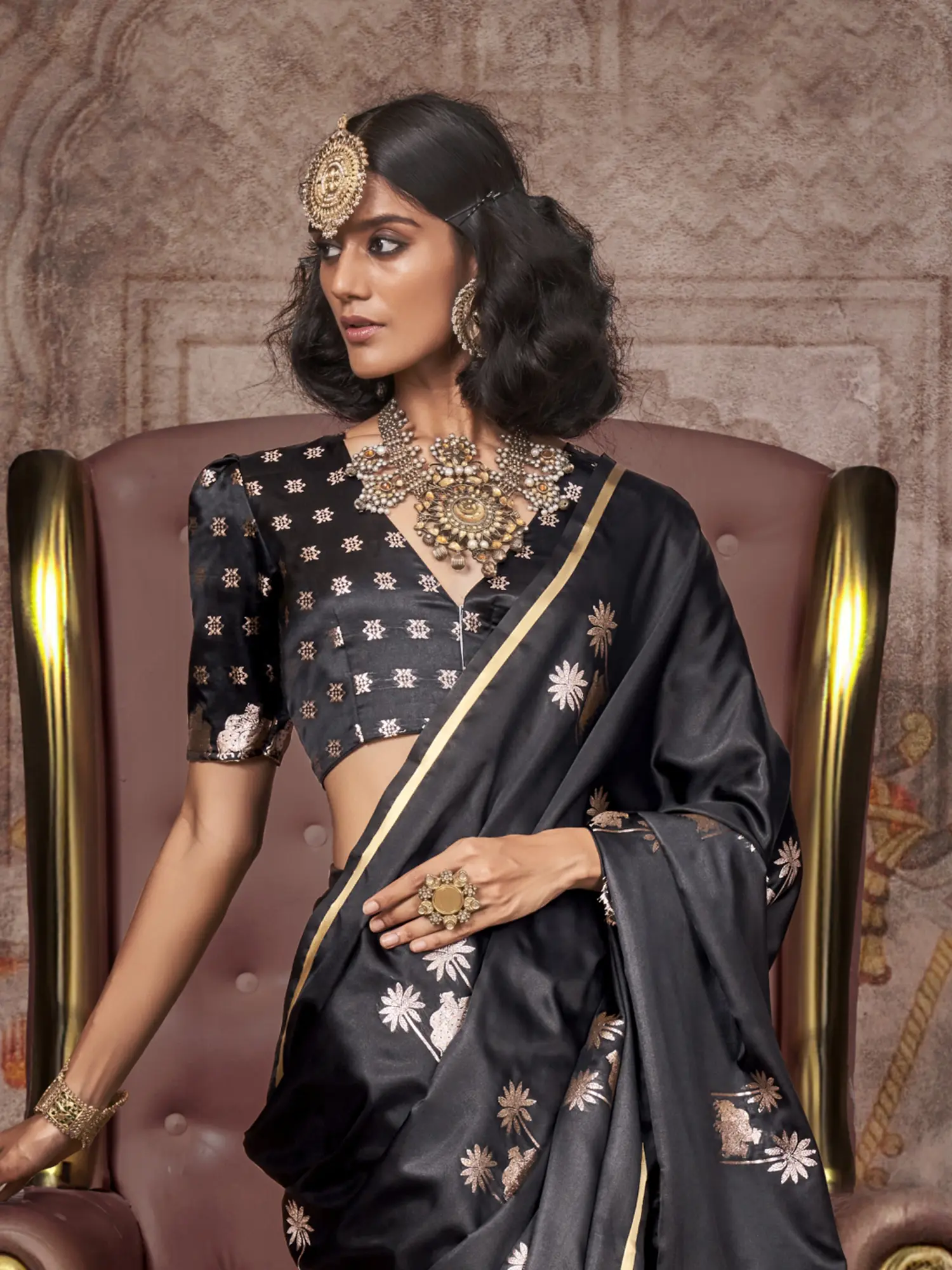 Weaving Work All Over Floral Motifs Attractive Festive Wear Silk Saree