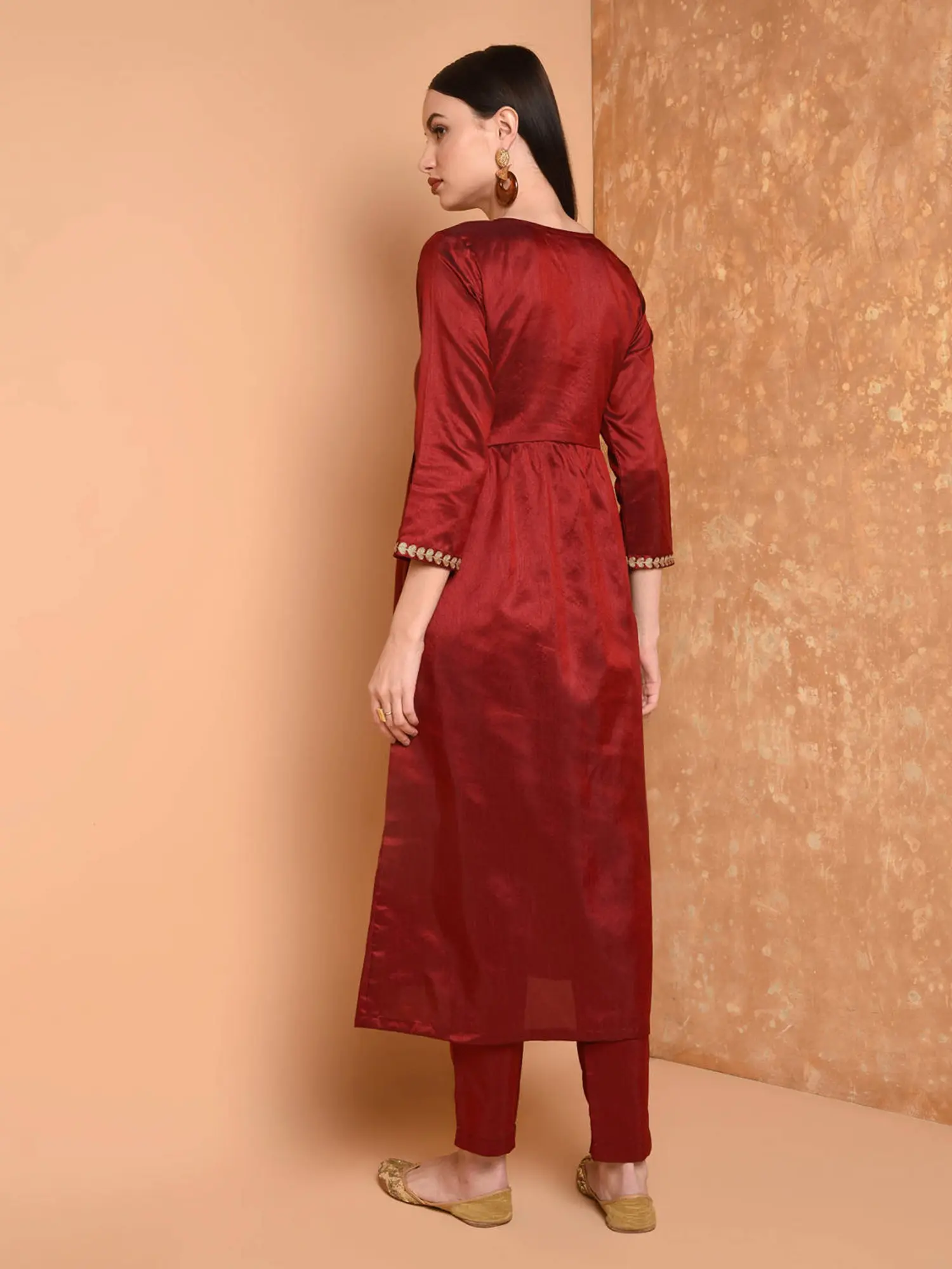 This silk kurta set is more than just an outfit; it's an embodiment of timeless style and refined taste. It’s the ideal choice for the modern woman who appreciates traditional aesthetics with a contemporary twist. Whether you're attending a joyous wedding reception, a vibrant cultural festival, or an elegant evening soiree, this ensemble promises to make you feel radiant and confident. Pair it with statement gold jewelry and elegant heels to complete your look, and be prepared to receive compliments throughout the event. This is a piece that will undoubtedly become a cherished addition to your festive wardrobe.