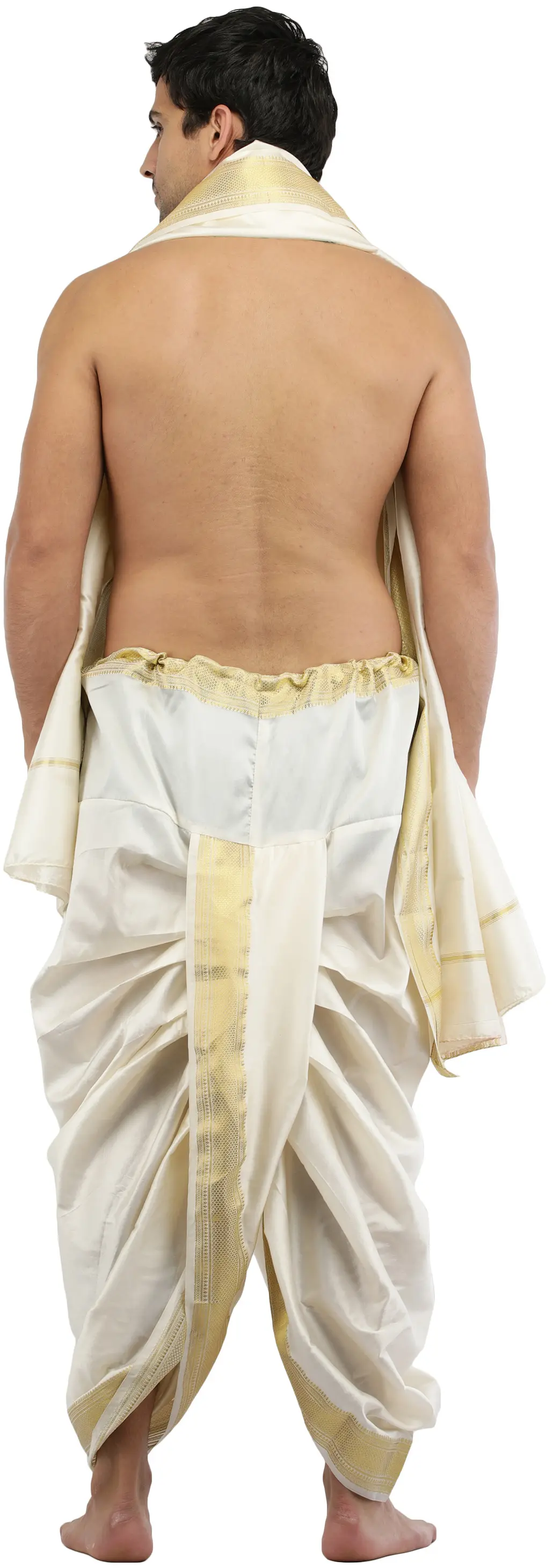 Woven Golden Border Ready to Wear Dhoti and Angavastram Set
