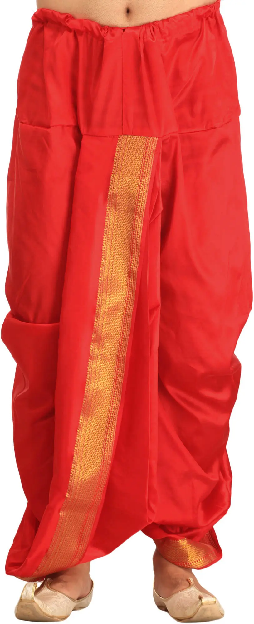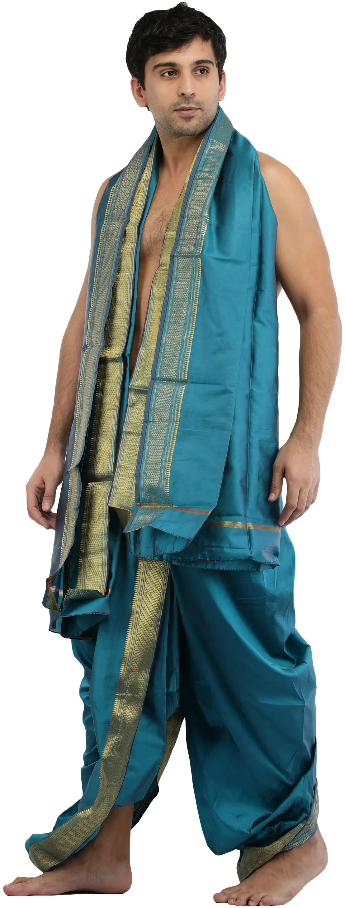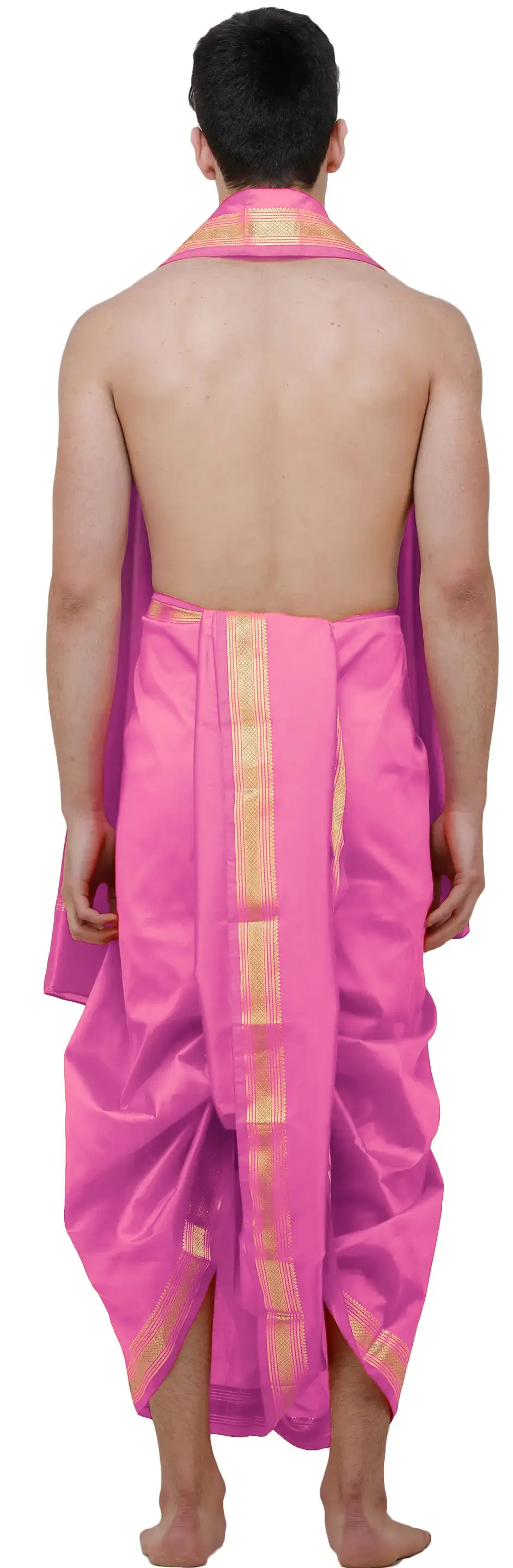 Ready to Wear Dhoti and Angavastram Set with Meenakari Woven Golden Border