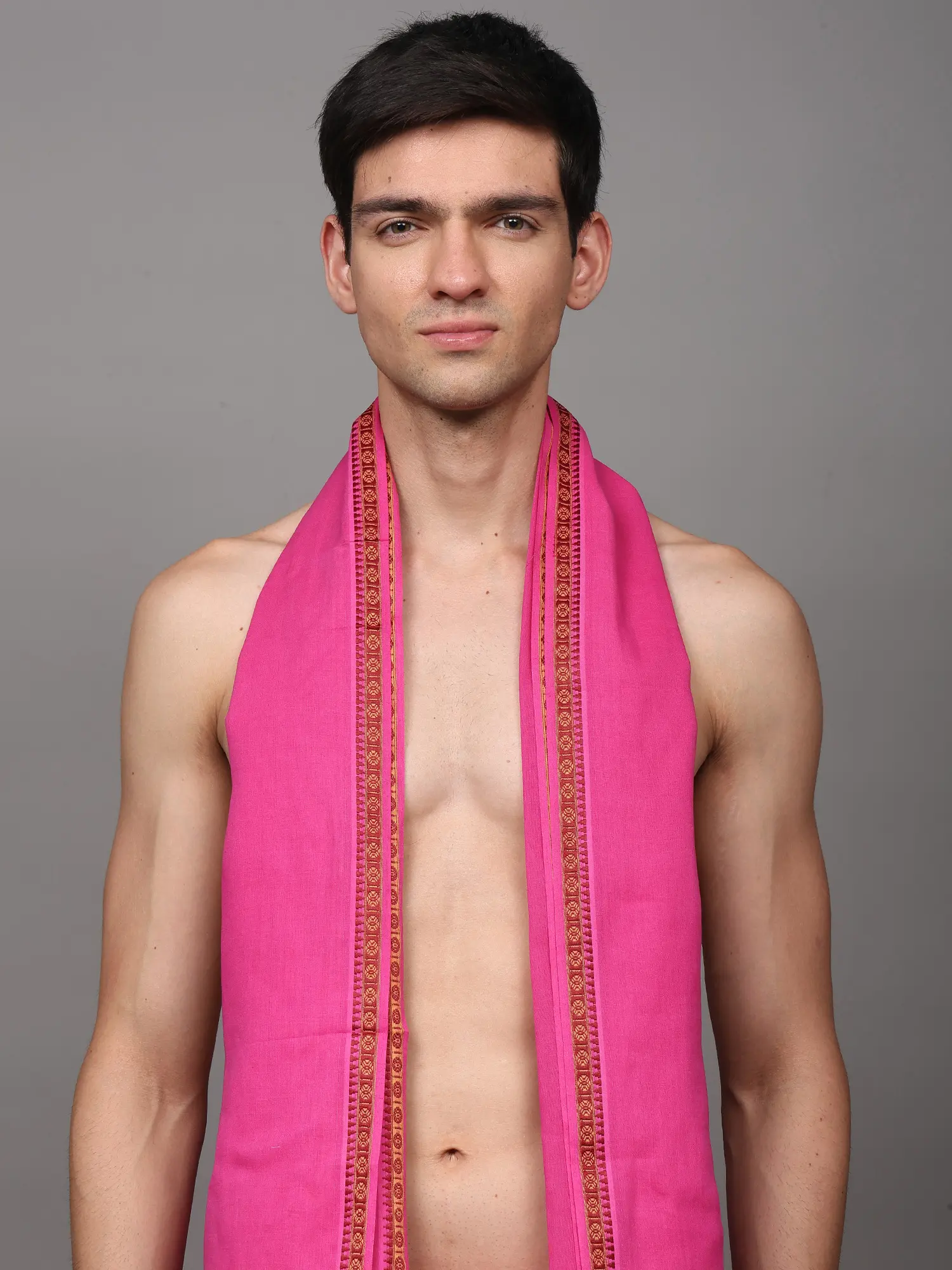 Plain Dhoti and Angavastram Set with Striped Border