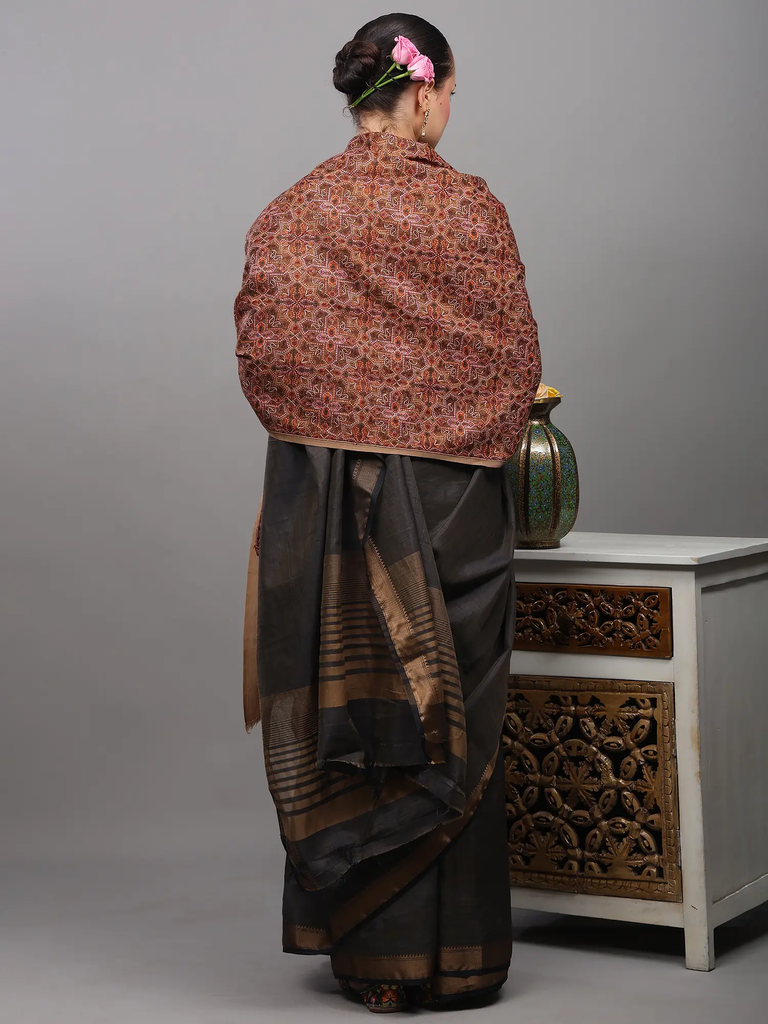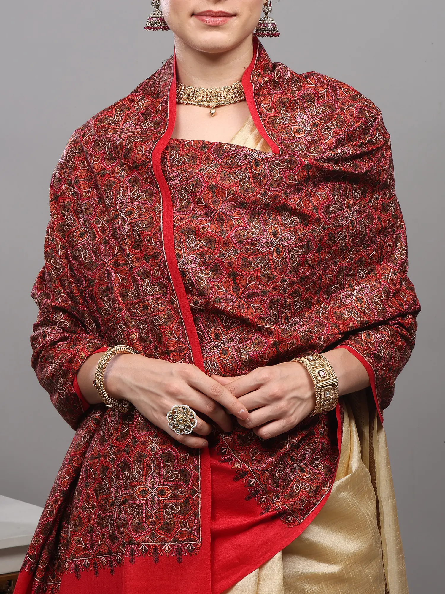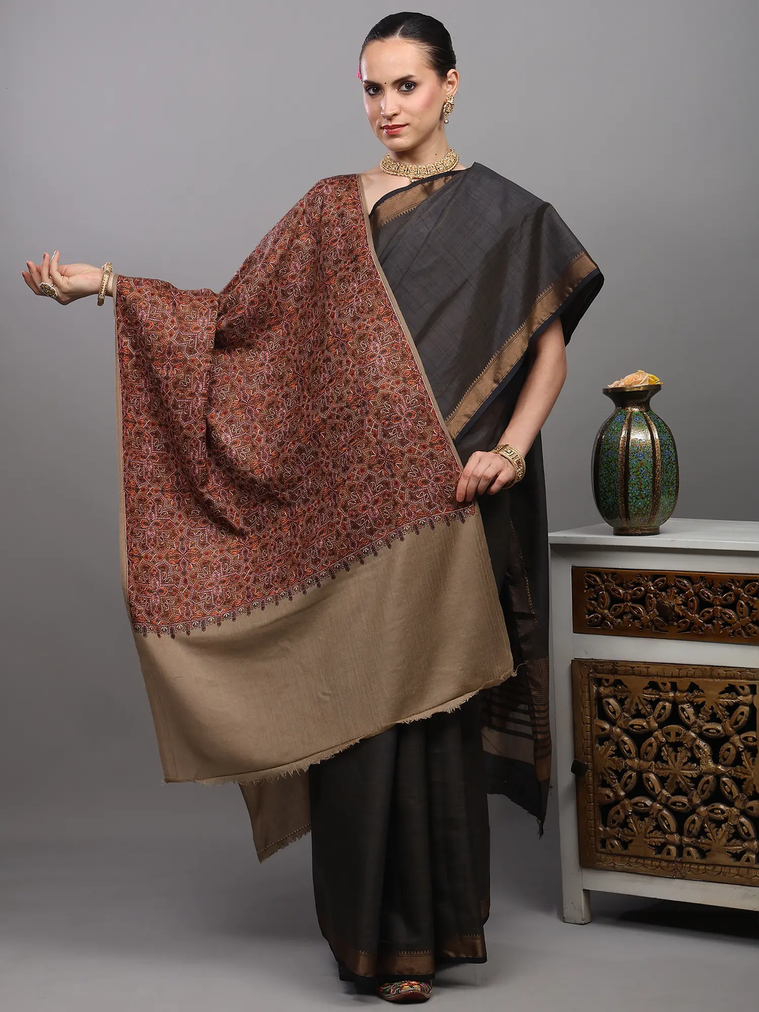 Amritsari Chain Stitch Satin Aari Embroidered Mughal Motif Pure Wool Shawl