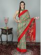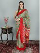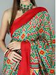The magnificent multi-layered magic of traditional Ajrakh print has been transformed into this beautiful digital print patola saree, a treat to the eyes and to the lover of ethnic Indian women’s wear in you.
