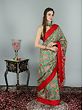 The maker has maintained the traditional domination of red shade- used profusely on the fabric, interspersed with yellow and green in three gorgeous digital print sarees. The age-old practice of bold block prints repeated throughout the textile is employed in all three pieces- each one more eye-catching than the other. If you are looking to leave a mark with your Indian style and believe that no style statement is bolder than a beautiful saree, these Ajrakh print sarees are a must-have for you.