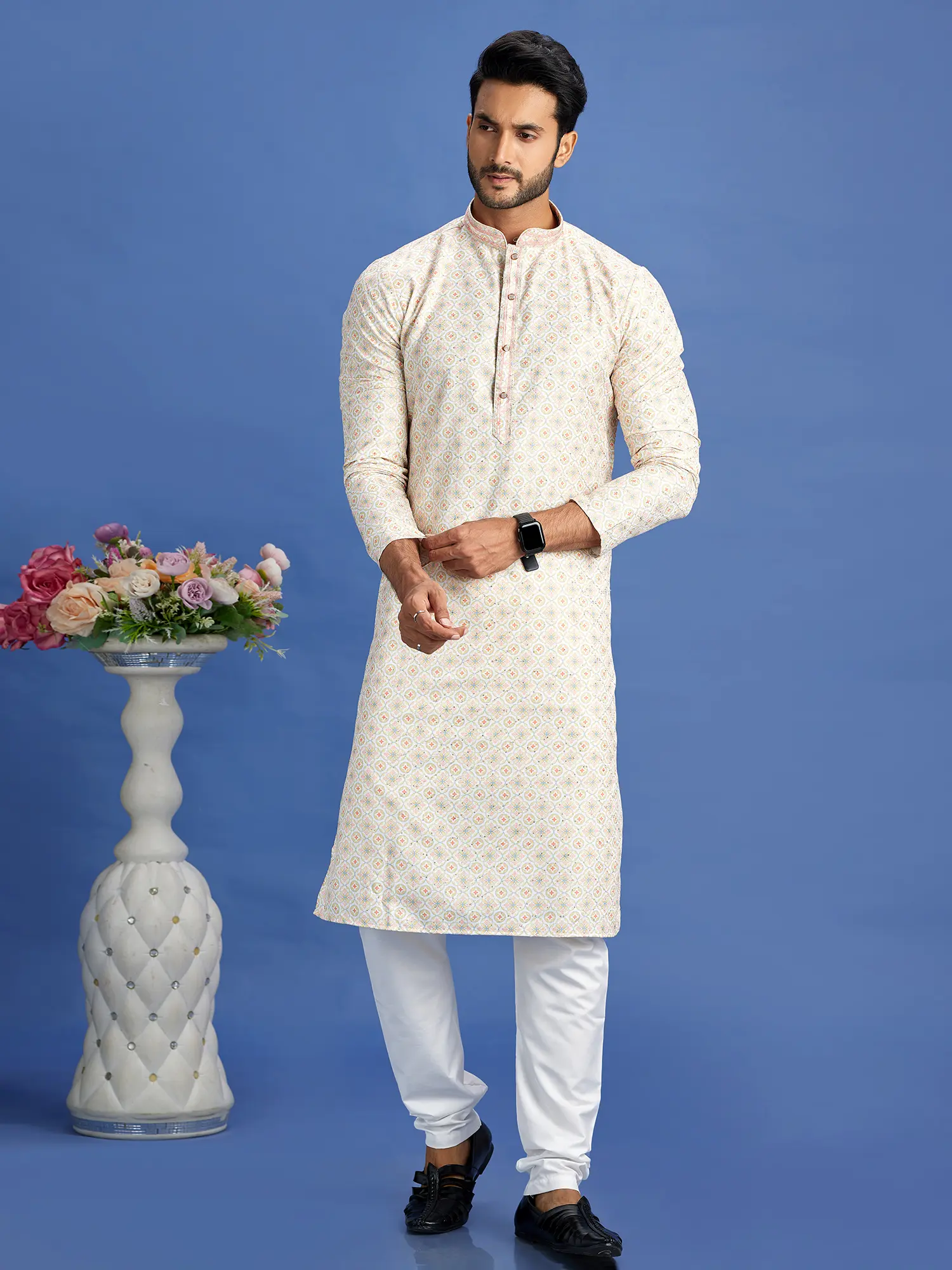 Star-White Kurta Pajama with Lukhnavi Chikan Embroidery by Hand