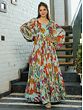 Golden-Rod Long Gown with All-Over Floral Paisley Pattern in Multicolor Print