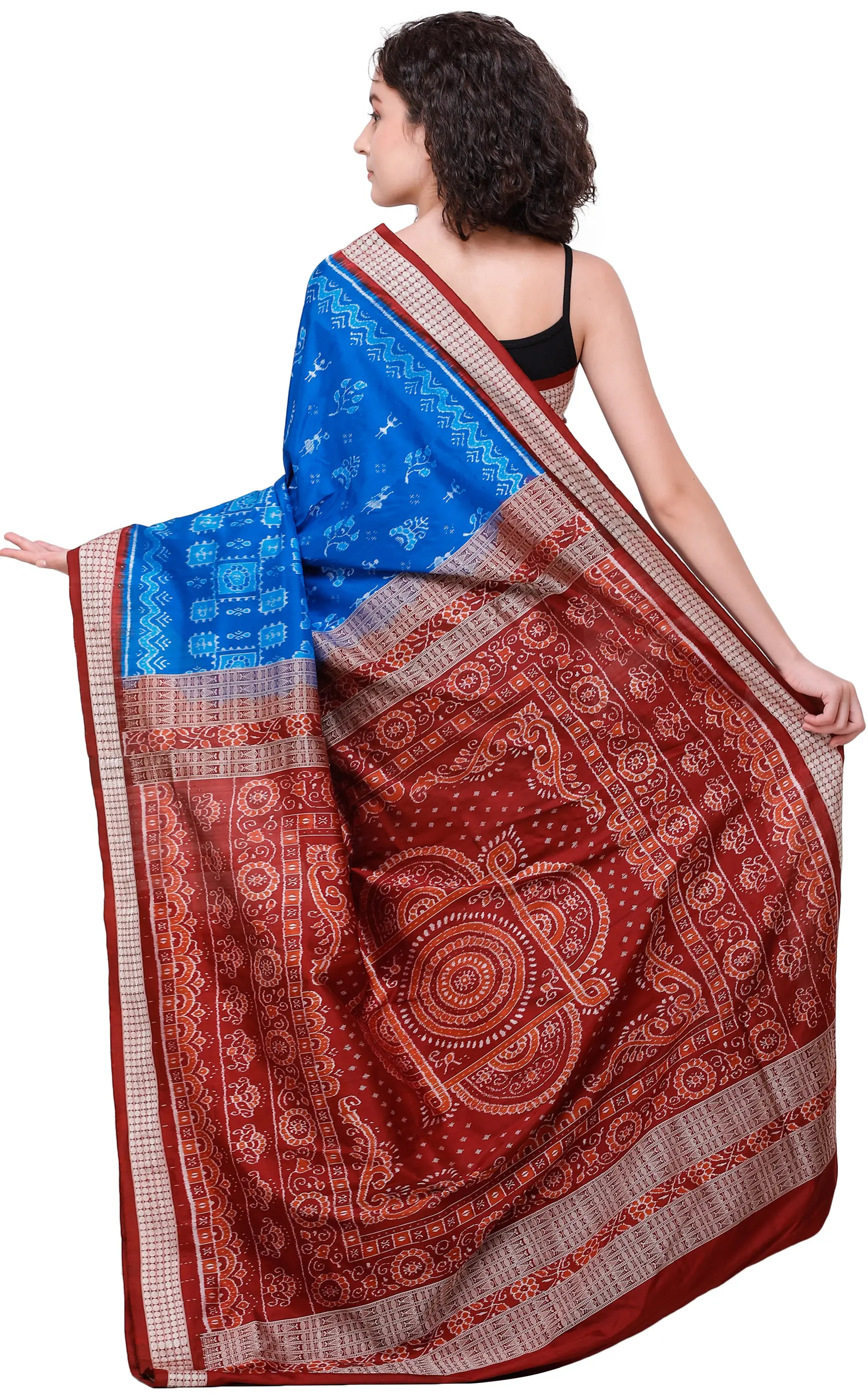 Crafted from pure silk, this Sambhalpuri sari offers unparalleled comfort and a graceful flow. The natural sheen of silk enhances the vibrancy of the colors and the intricacy of the patterns. Whether you are attending a wedding, a festive celebration, or a formal gathering, this sari is sure to turn heads. Its timeless design and exceptional quality make it a treasured addition to any wardrobe. Pair it with traditional gold jewelry and elegant heels for a complete, sophisticated look that embodies both tradition and modern allure. The inherent beauty of the handloom technique means that each sari is unique, carrying the subtle variations that speak to its handmade origin.