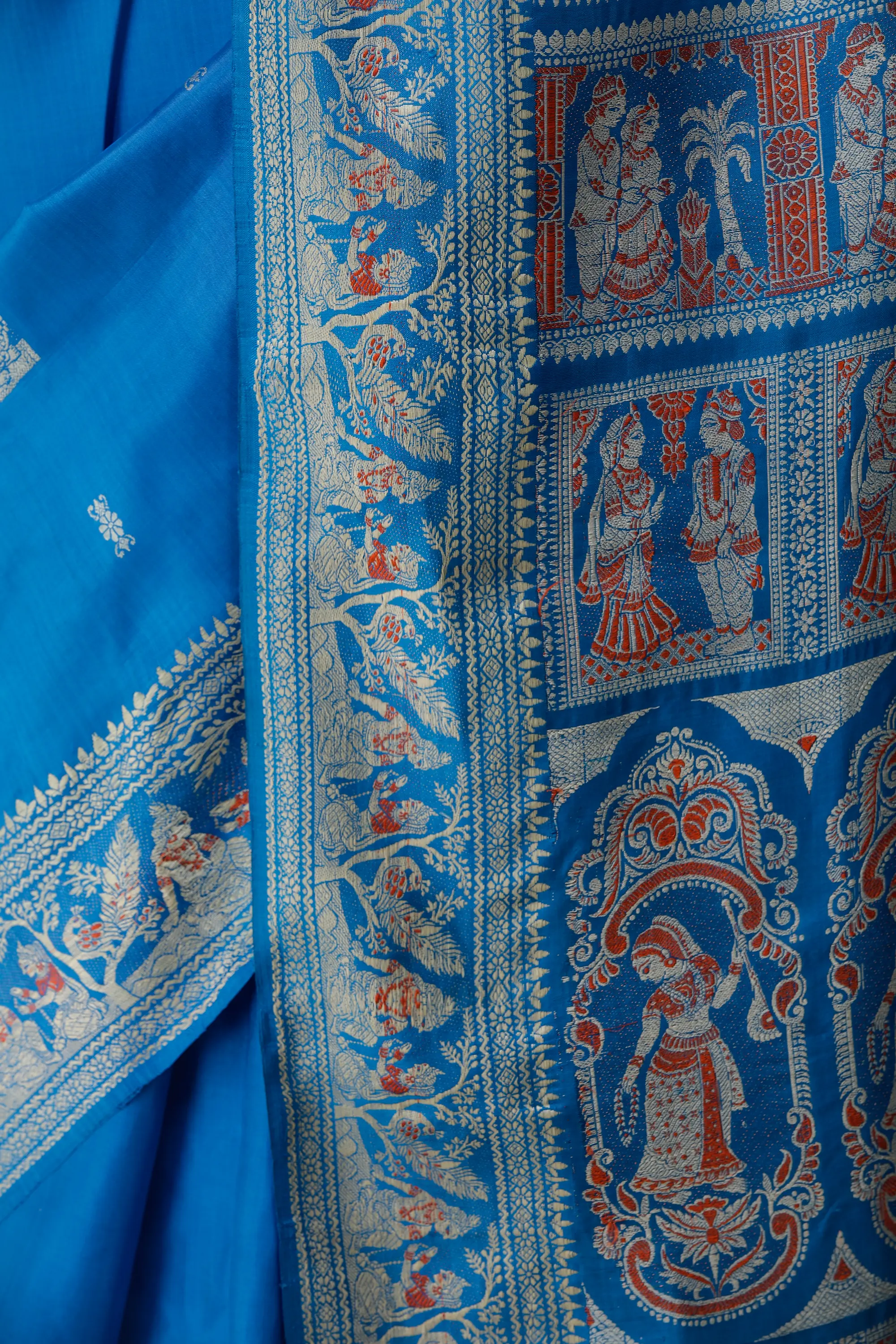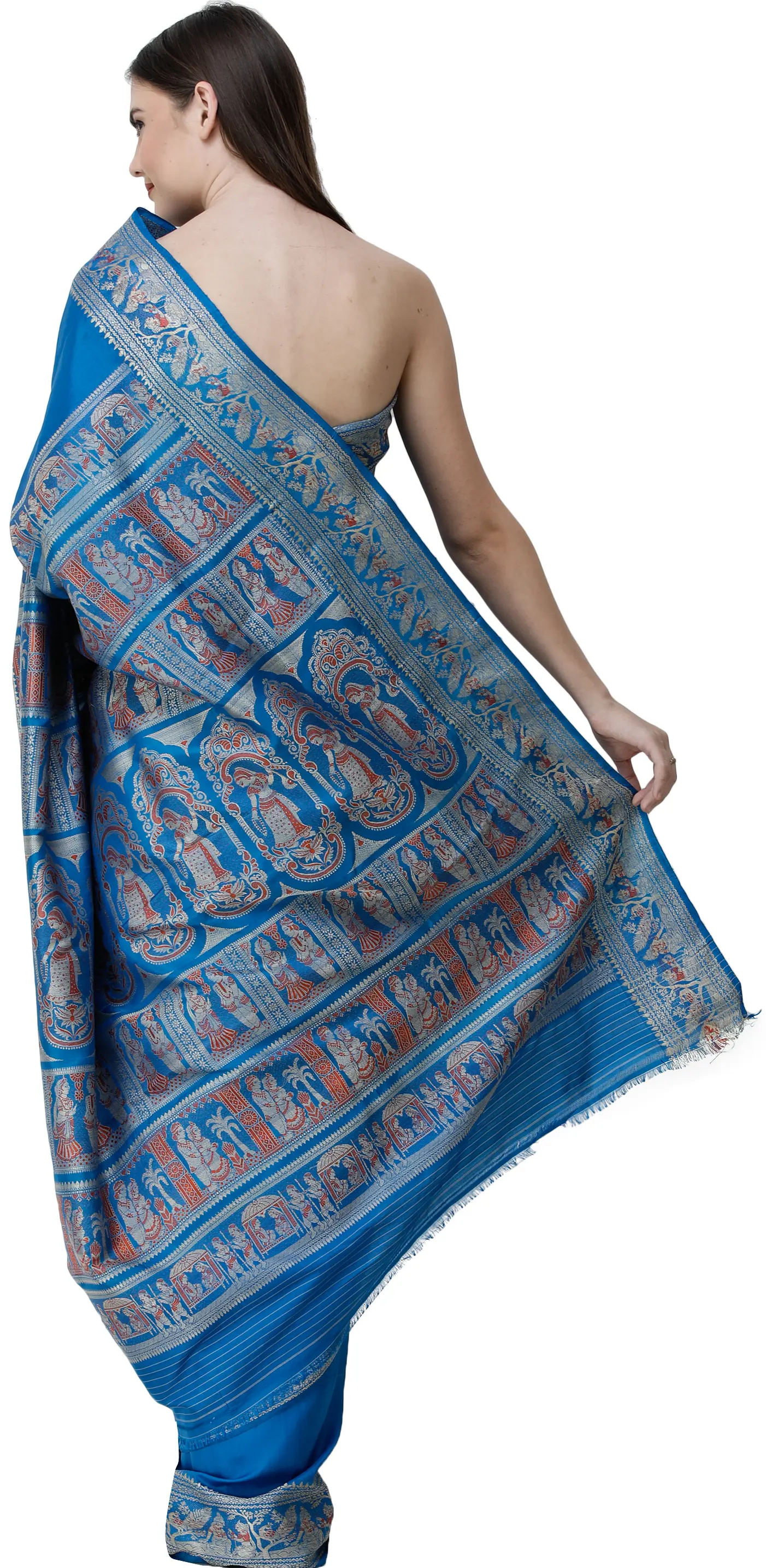 Teal-Blue Baluchari Silk Handloom Saree with Exquisite Zari Work