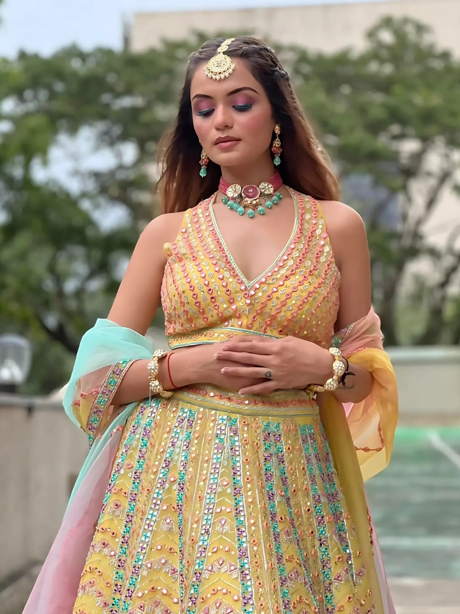 A Vision in Sunshine Yellow: Exquisite Lehenga Choli Ensemble