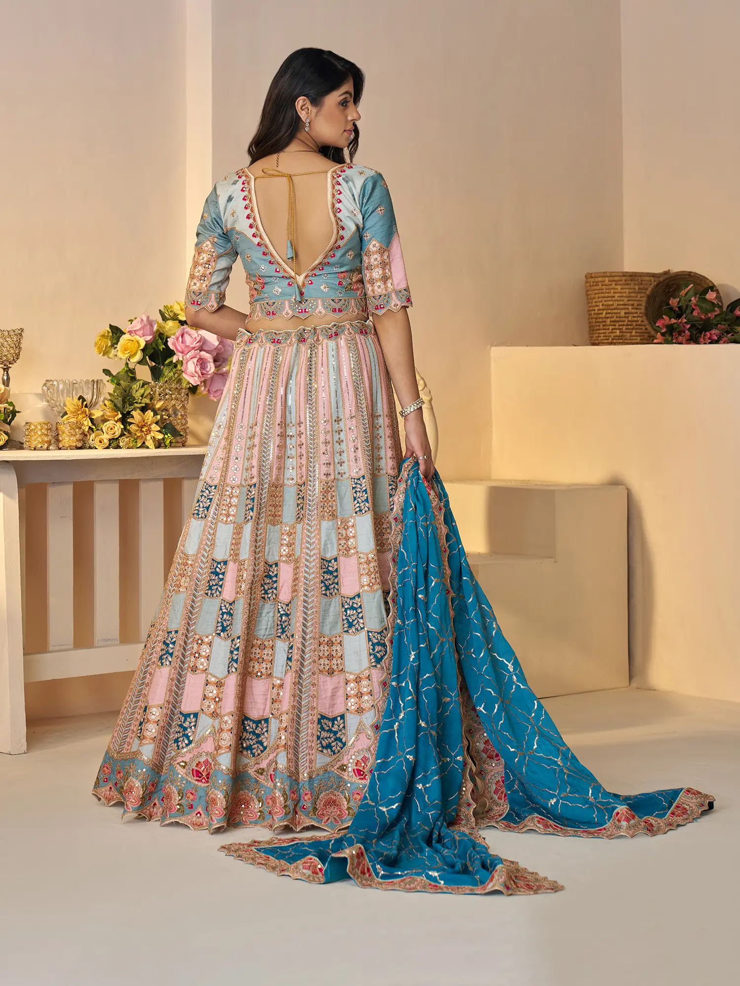 Light-Pink Soft Net Thread Embroidered Lehenga Choli with Sheer Dupatta