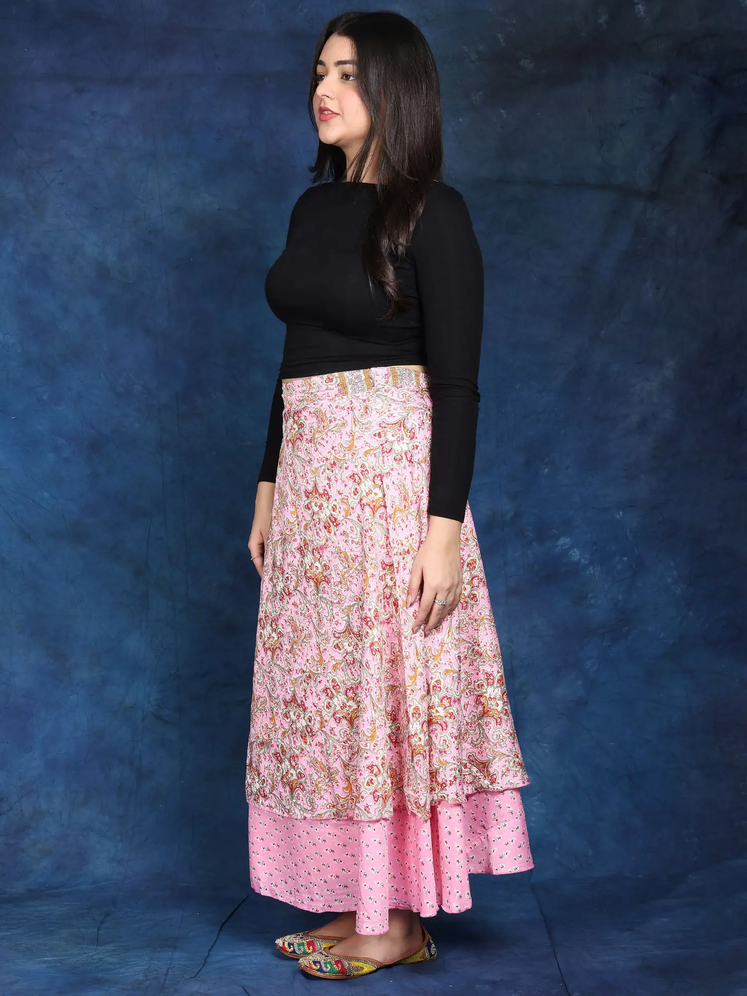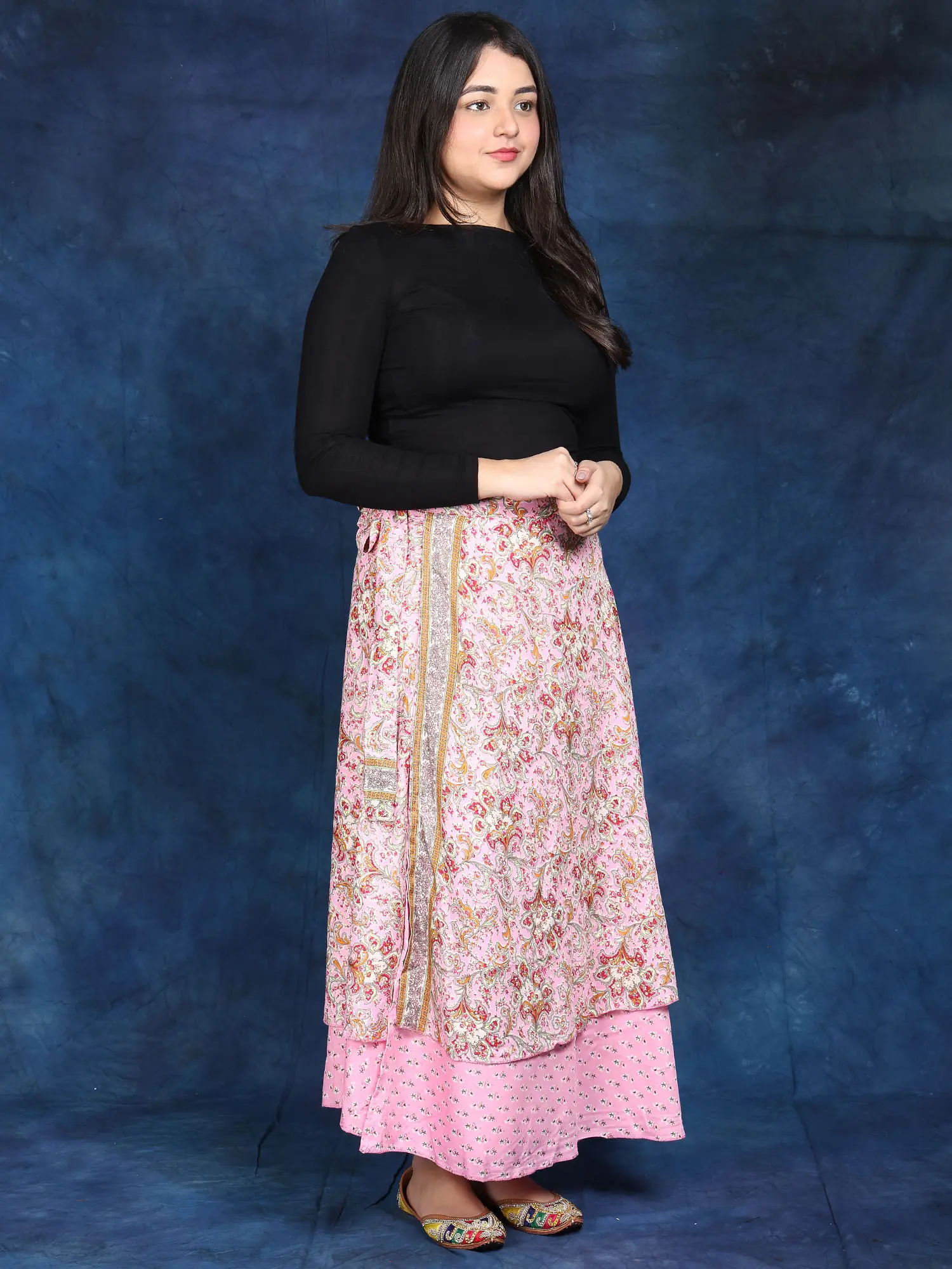 Cream Floral Printed Wrap-Around Long Skirt from Pilkhuwa