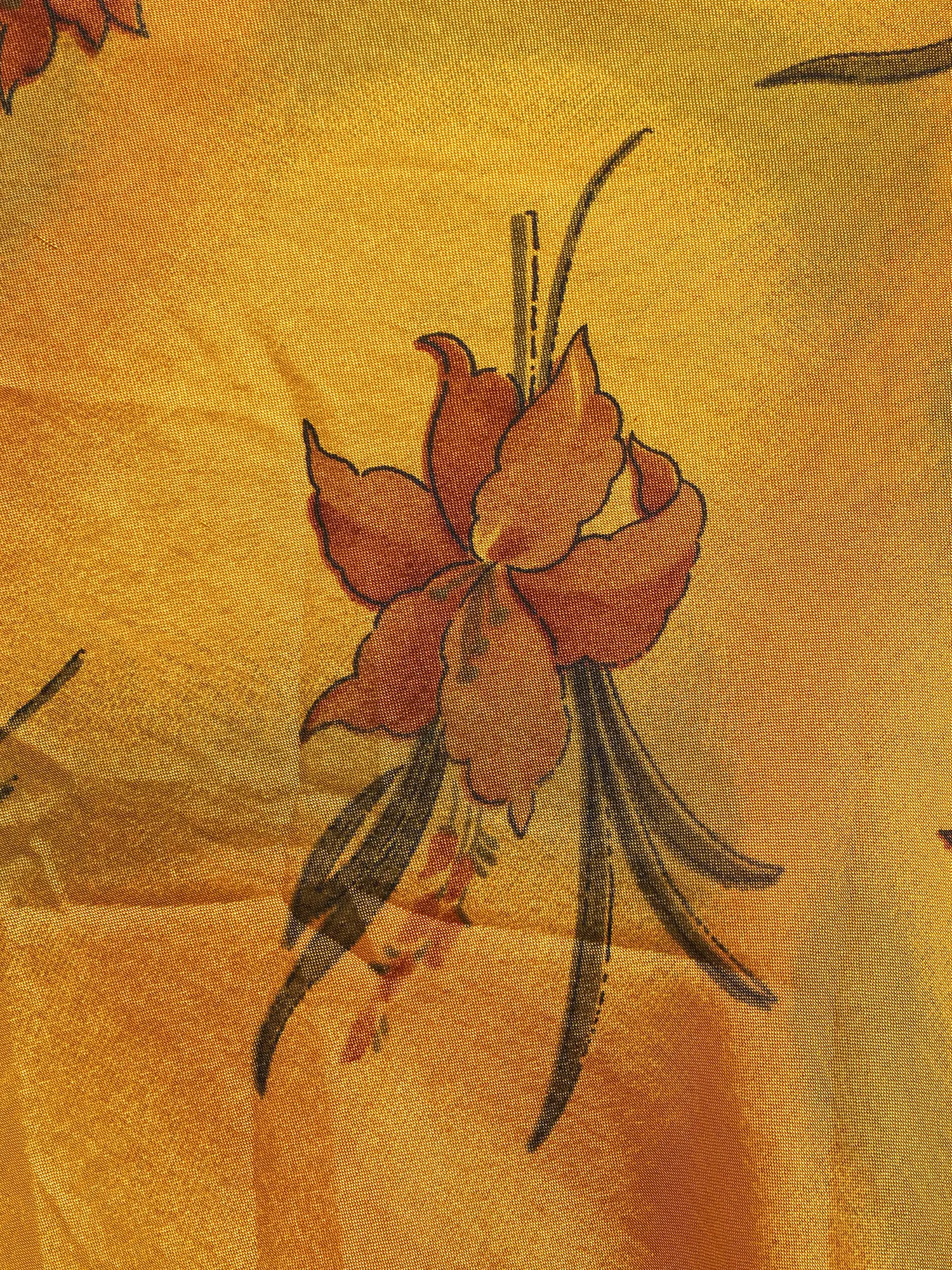 The skirt's luxurious silk viscose fabric drapes gracefully, moving fluidly with each step. Its soft touch against your skin promises comfort throughout the day. The intricate floral print is a masterpiece of design, showcasing a delicate blend of teal and gold hues that dance across the fabric. The double-layered design adds a touch of volume and sophistication, while maintaining a lightweight feel. The skirt's wrap-around style offers versatility, allowing you to adjust the fit to your preference and create a unique look every time you wear it. Whether you prefer a more fitted or flowing silhouette, this skirt effortlessly adapts to your personal style.