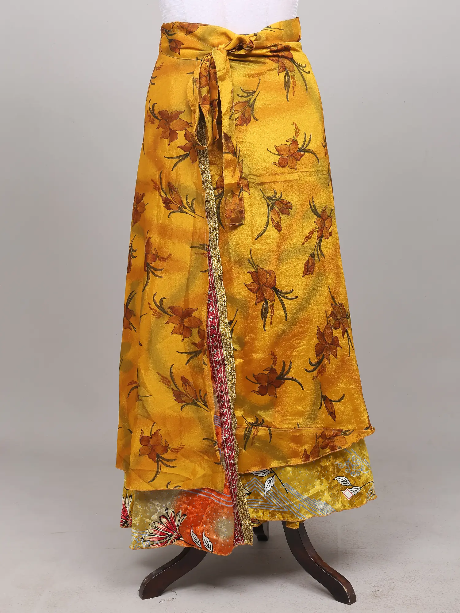 Cream Floral Printed Wrap-Around Long Skirt from Pilkhuwa