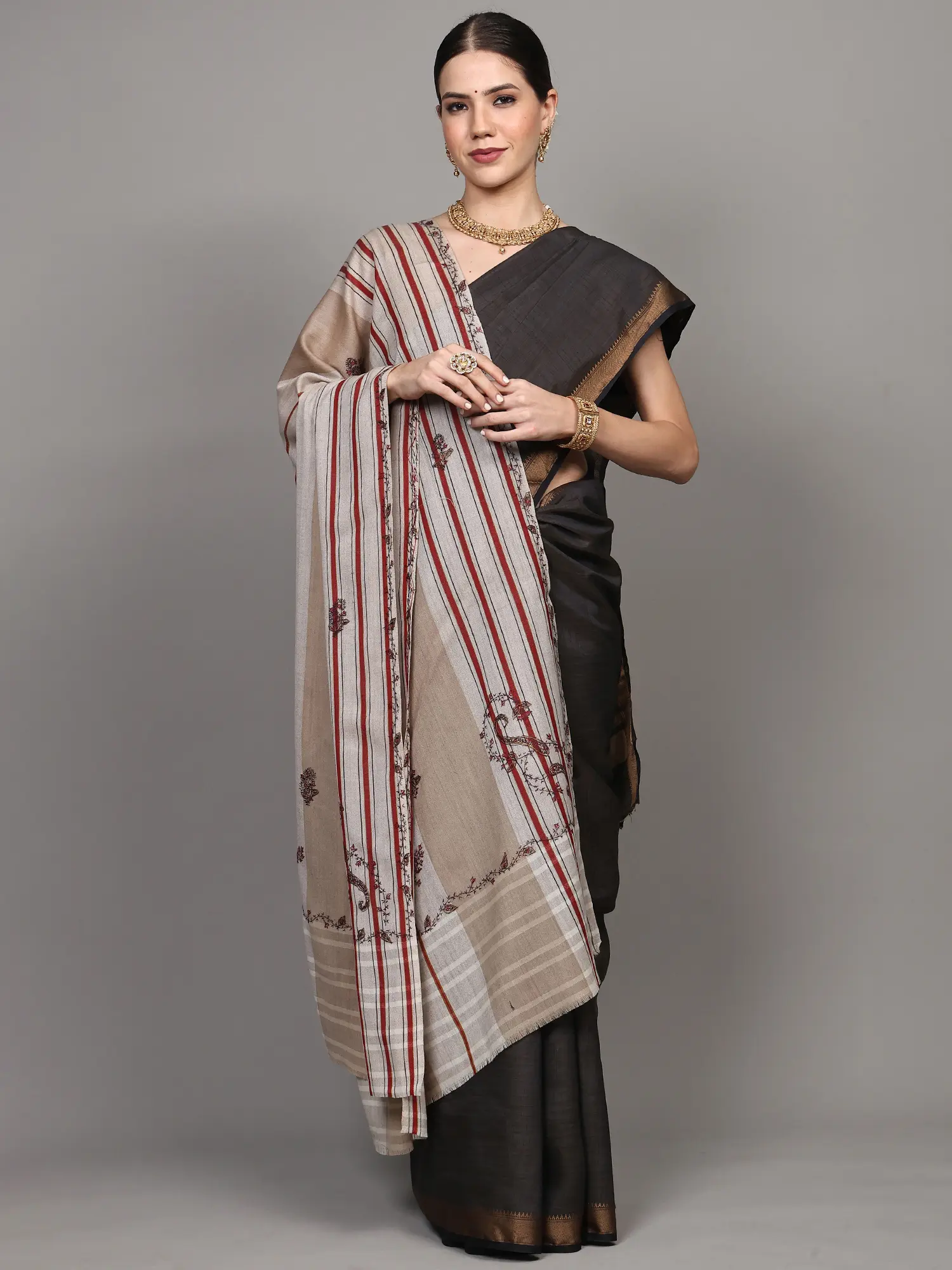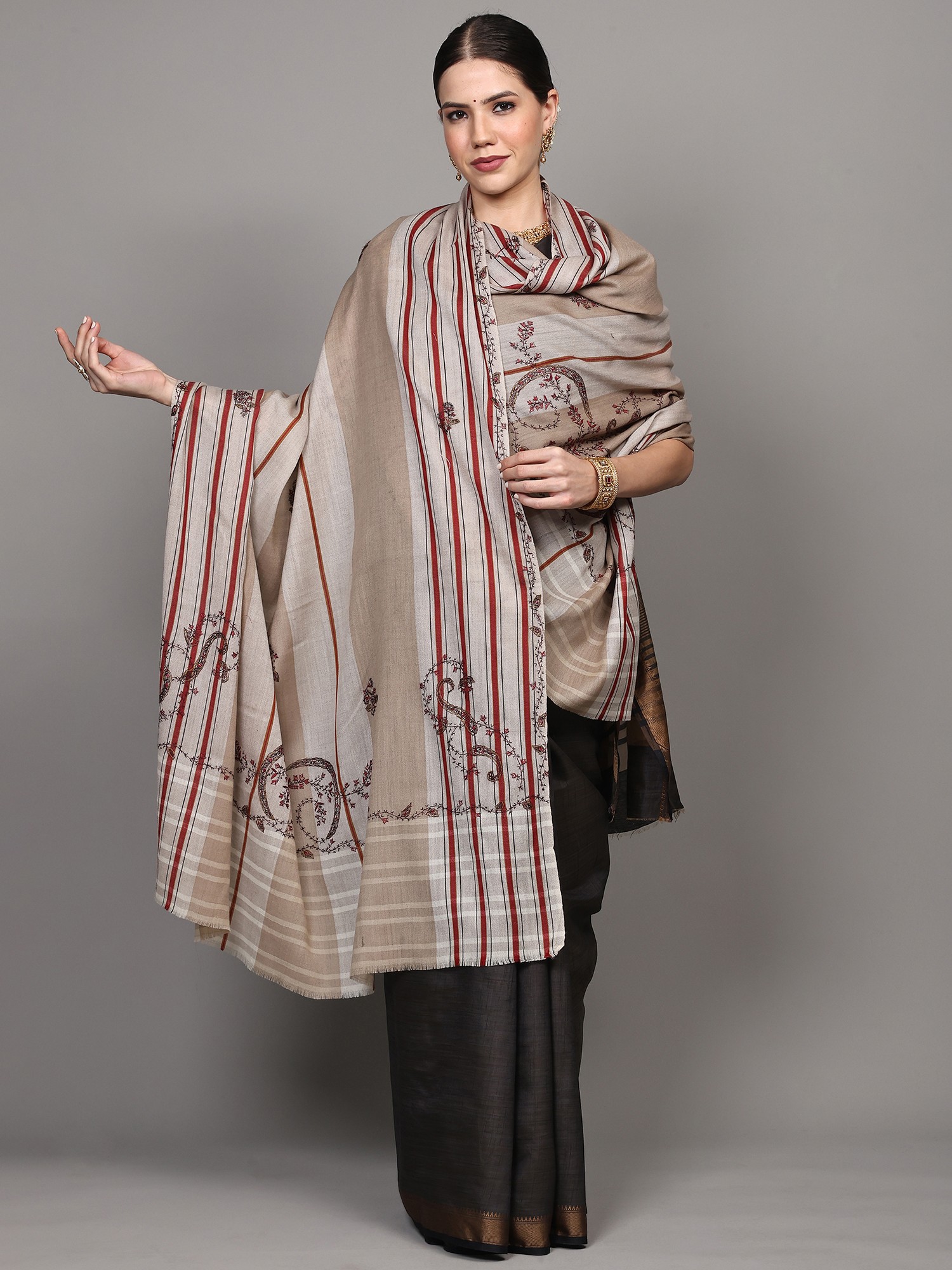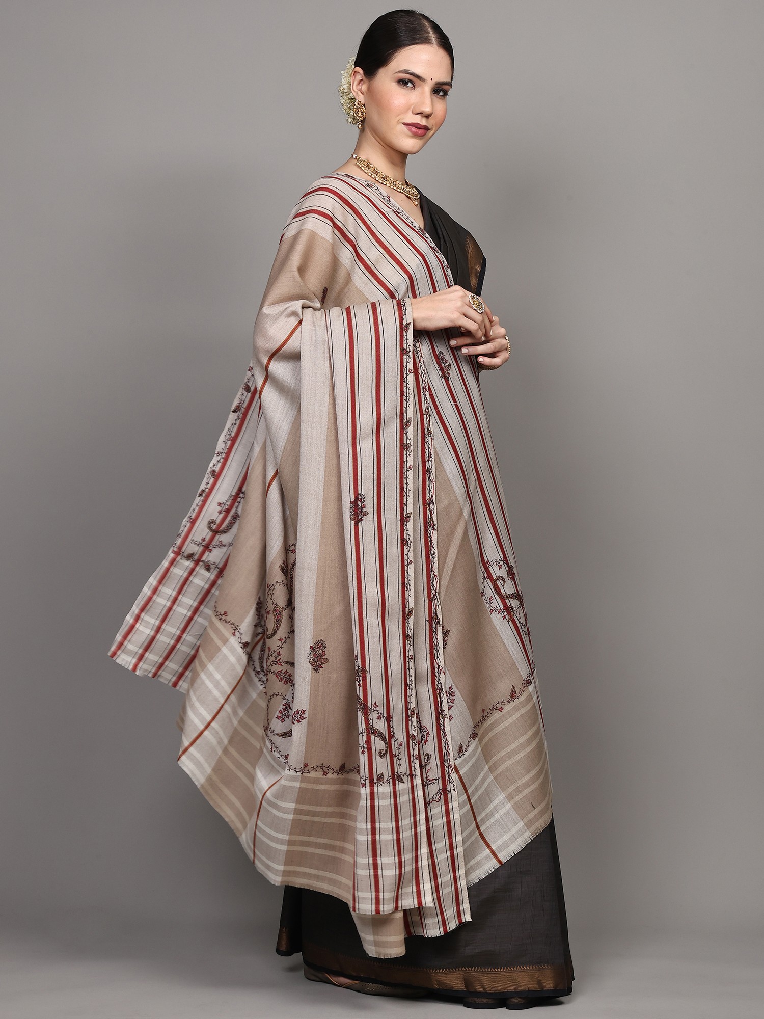 Tri-Color Fine Pure Wool Stole from Nepal with Woven Stripes