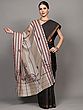 Cannoli-Cream Aari Embroidered Kalamkari Stole with Printed Multicolor Paisleys-Flowers Motifs from Punjab