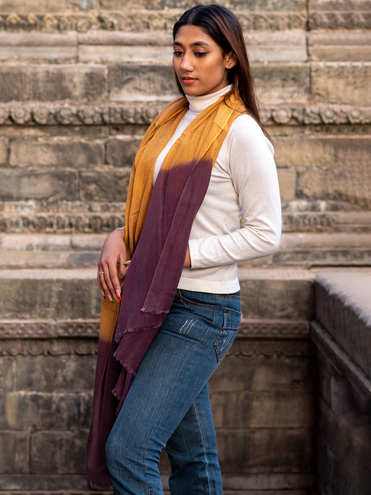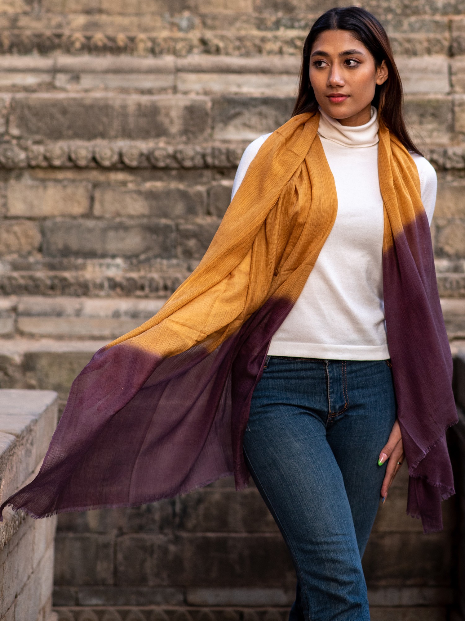 Play with your fashion experiments through our Dual Shaded Pashmina Stole from Nepal, where the finest Pashmina Silk originates. This stole showcases the perfect harmony of colors, a modern take on traditional design. The concept of dual shades has been refined over time, echoing the evolving tastes of fashion. The stole's history lies in the skilled hands of Nepalese artisans who have perfected their craft. Its versatility aligns seamlessly with contemporary trends, adding a touch of sophistication to any outfit. Experience the luxurious softness and exquisite craftsmanship, making this stole a cherished addition to your collection.